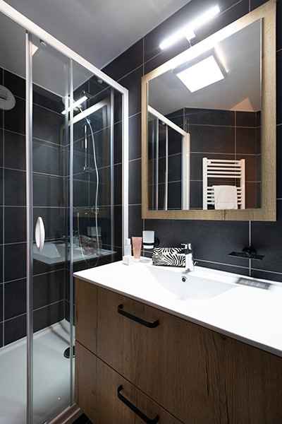 Une salle d’eau, wc séparé,. Une salle d’eau dans une chambre avec wc. Une salle de bain dans