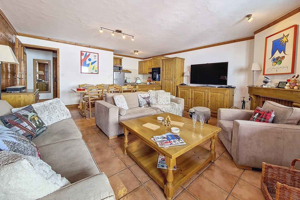 séjour avec canapé lit convertible pour 2 personnes, table basse, balcon ou