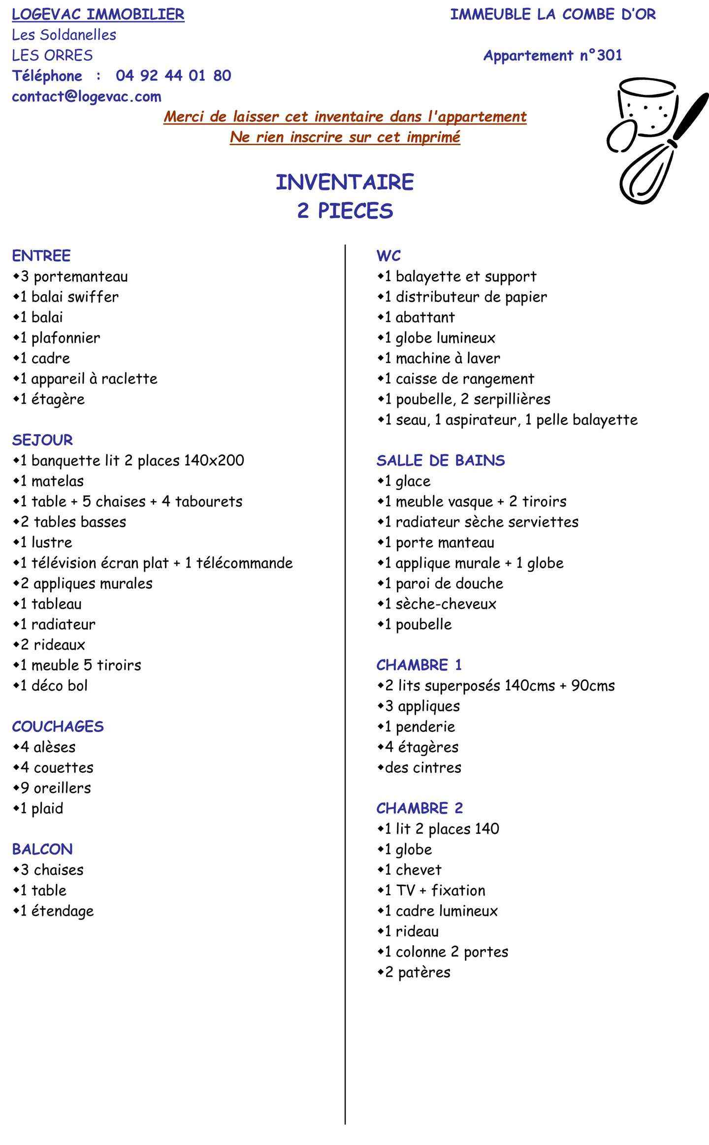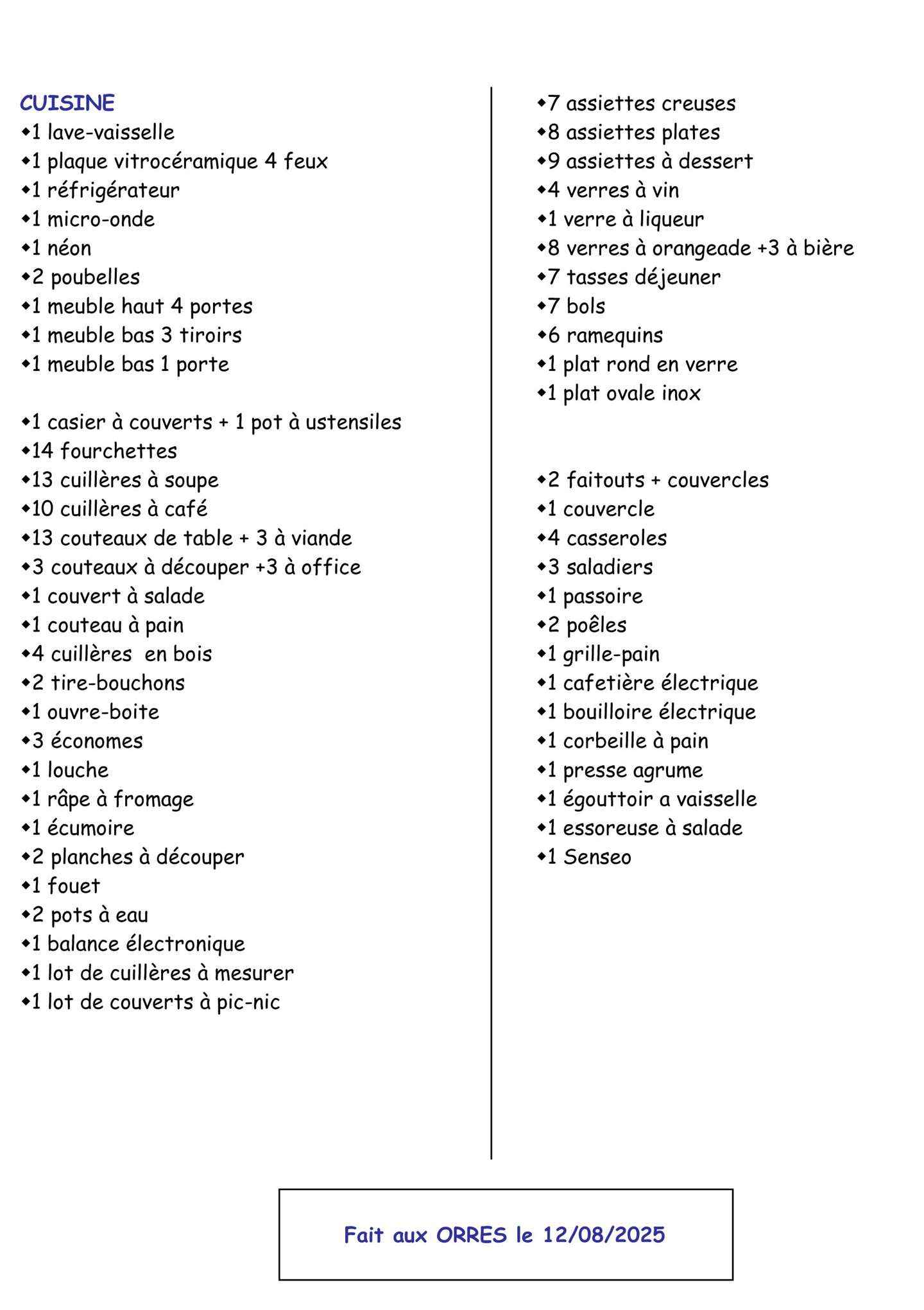 • Equipements : Balcon, Chauffage Electrique, réfrigérateur, Lave vaisselle, Micro onde, Télévision