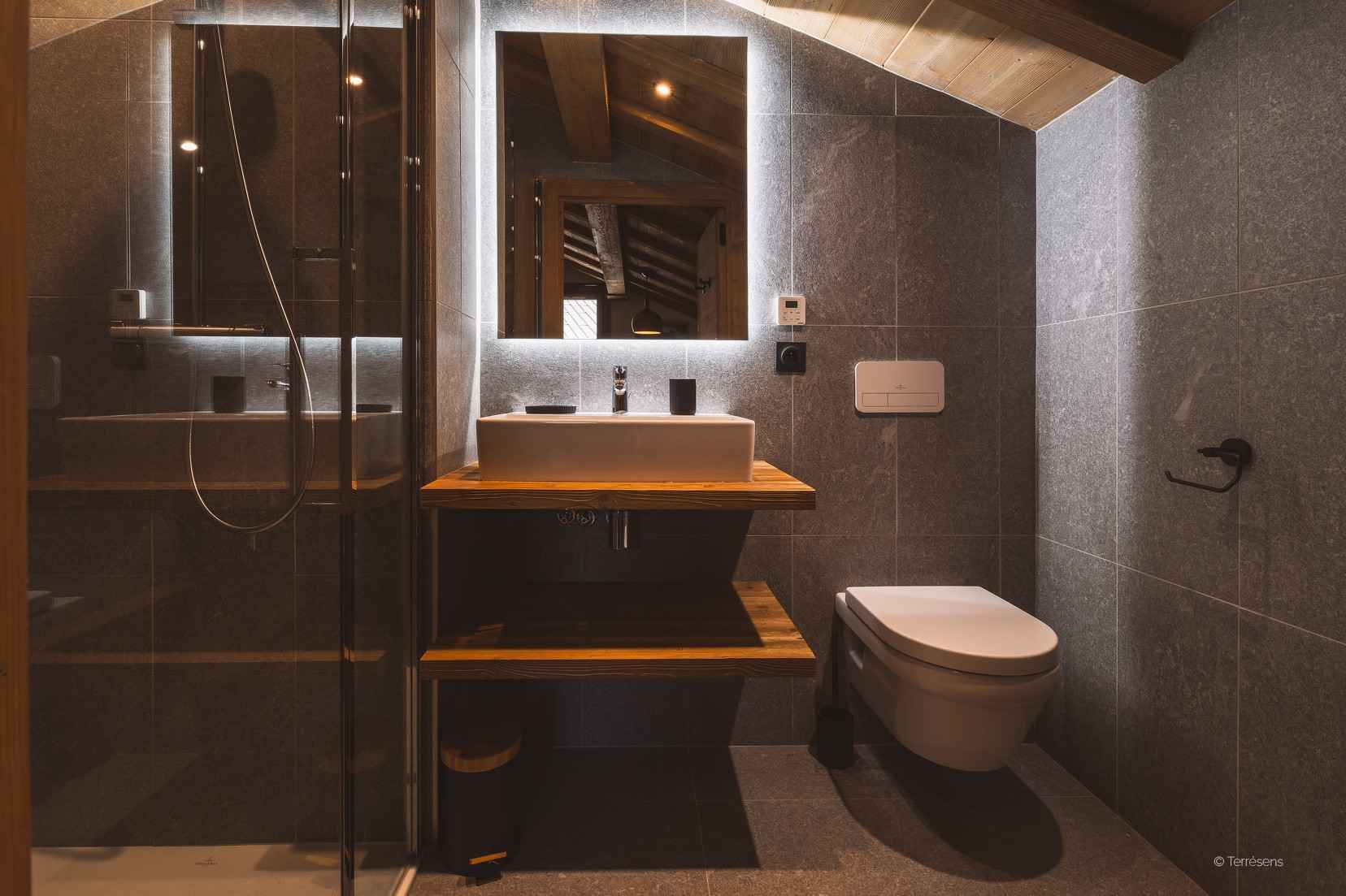Une salle d'eau ou salle de bain et d'un Wc séparés.