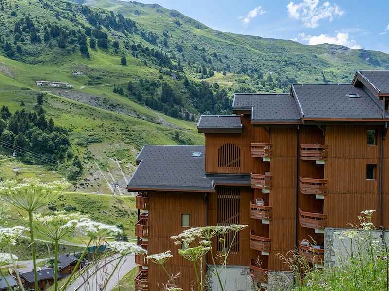 de la station, dans un quartier calme, la résidence de gamme premium arbore une architecture de type savoyard et offre une vue imprenable sur le lac du tueda. les appartements adoptent une décoration élégante avec une dominante de bois, avec balcons ou terrasses pour profiter du panorama sur les alpes. au salon de réception, les enfants retrouvent leur espace dédié.
