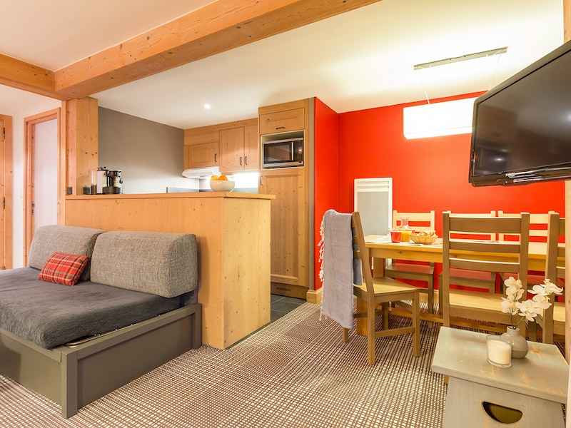 de la station, dans un quartier calme, la résidence de gamme premium arbore une architecture de type savoyard et offre une vue imprenable sur le lac du tueda. les appartements adoptent une décoration élégante avec une dominante de bois, avec balcons ou terrasses pour profiter du panorama sur les alpes. au salon de réception, les enfants retrouvent leur espace dédié.