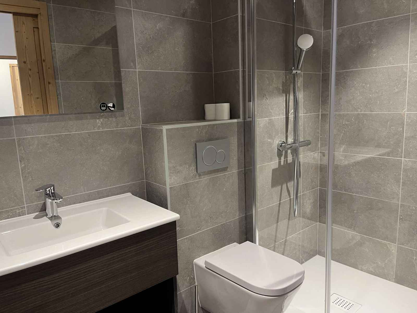 Chambre 2 : un lit double, rangements, salle de douche attenante avec WC
