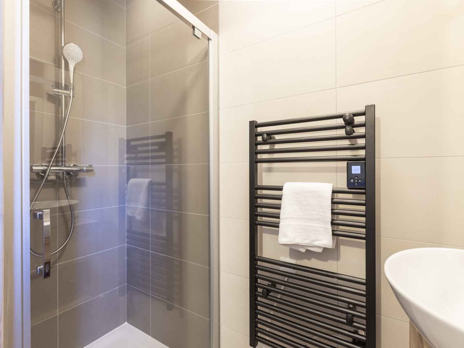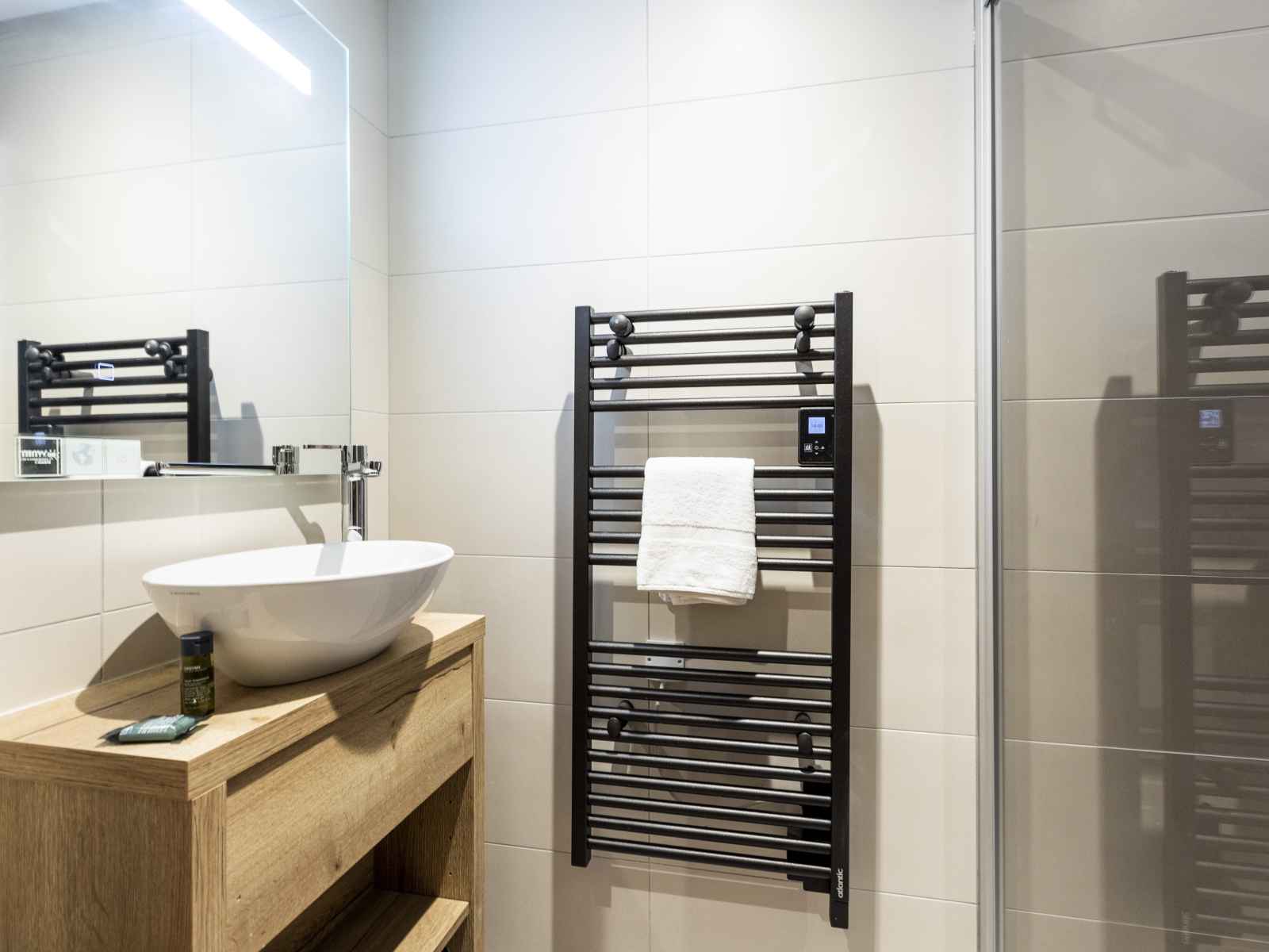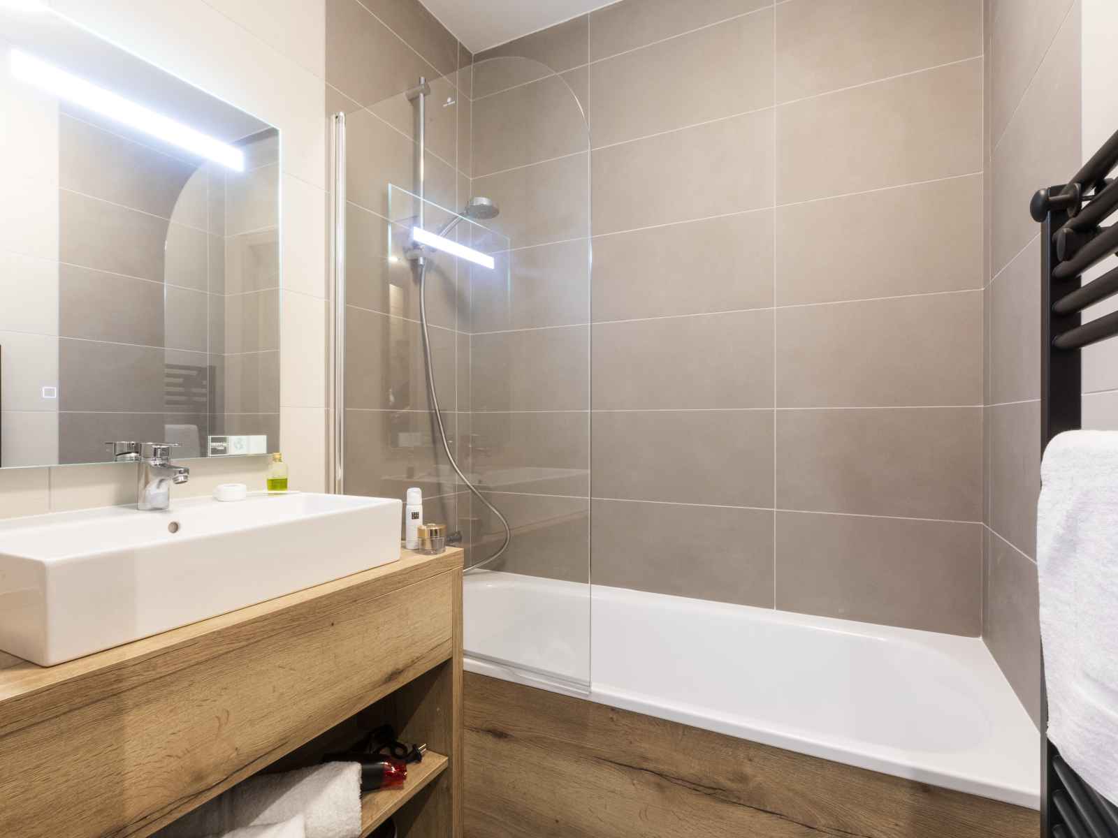 Salle de bain avec baignoire ou douche, sèche-serviettes