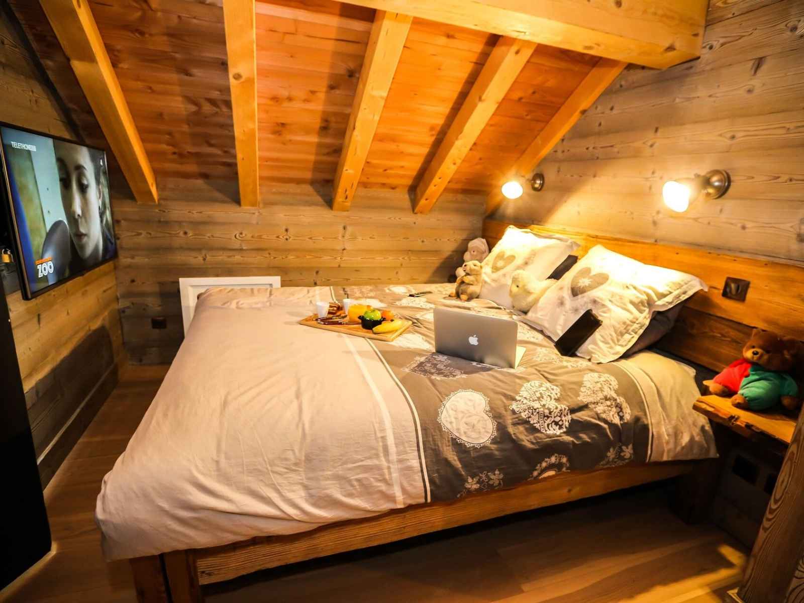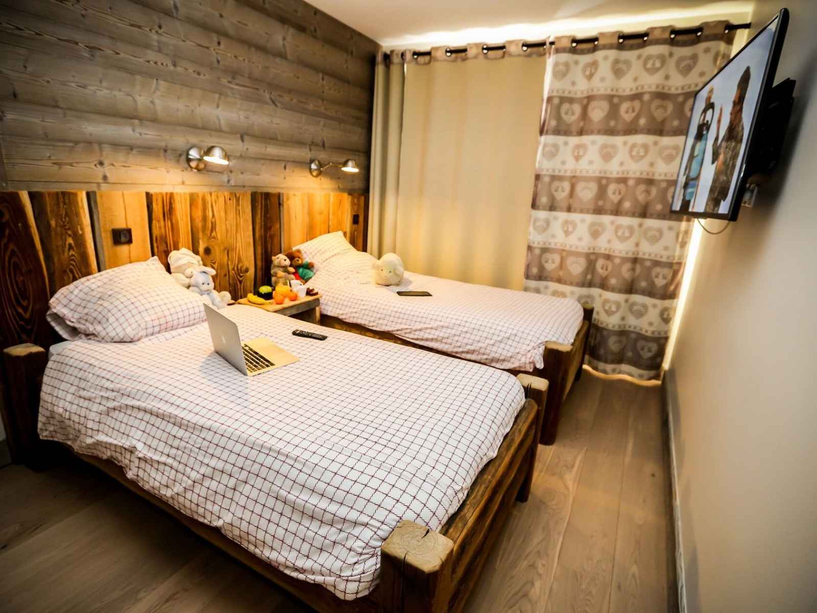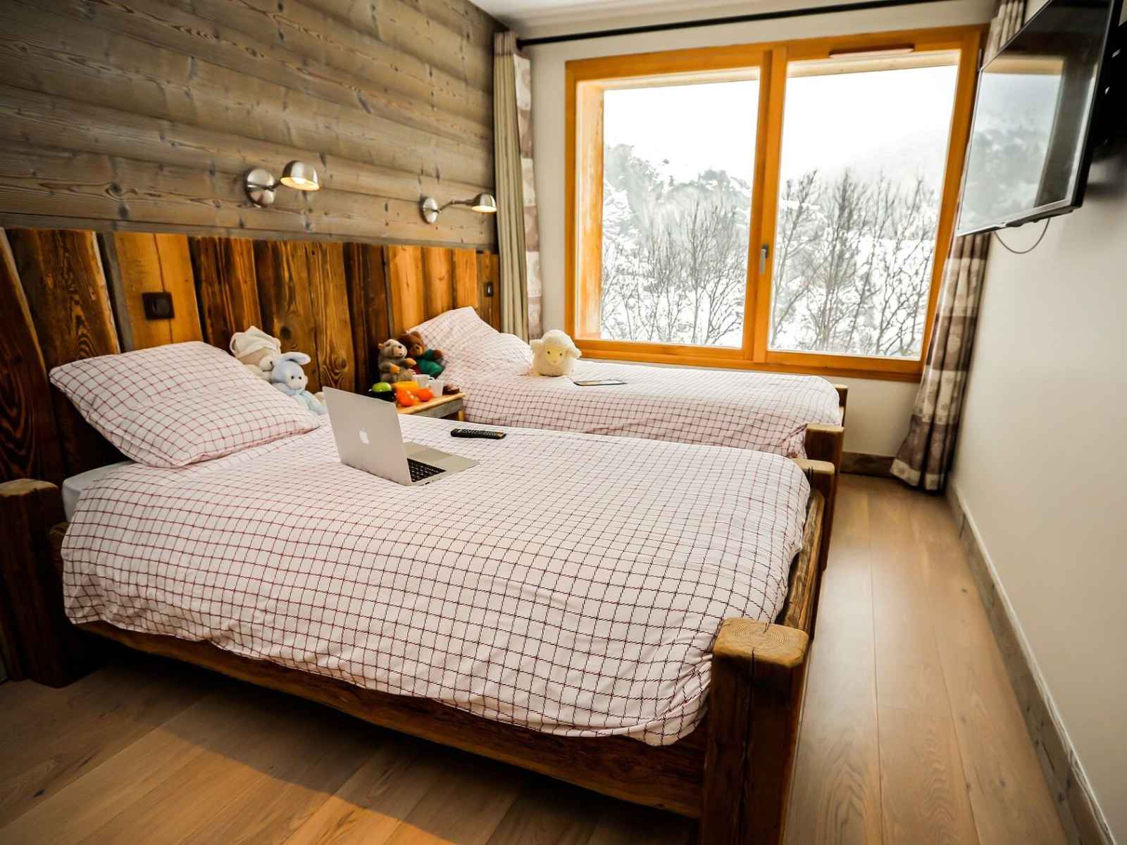 ses commerces. le chalet est tout équipé : une cuisine (four, micro-ondes, machine à café, appareils à raclette, lave vaisselle, plaque vitrocéramique, réfrigérateur, congélateur, grille-pain), un grand salon (canapé, écran plat, dvd, accès wifi), 4 chambres (lit double en 160 avec télévision, lit double en 140 avec télévision, 2 twins avec 2 lits simples et télévision chacune), une salle de bains (baignoire, wc), une salle de douche, 1 wc indépendant un balcon et deux terrasses (25 m² et 20 m²).