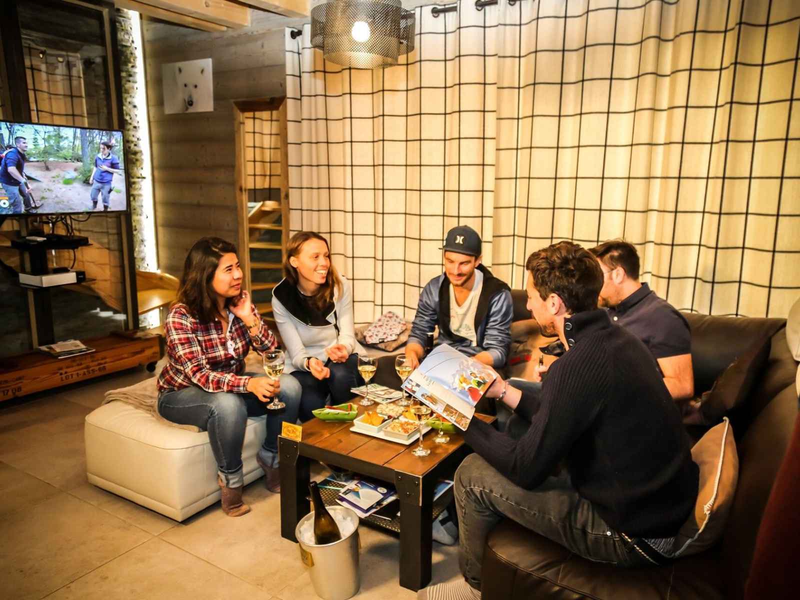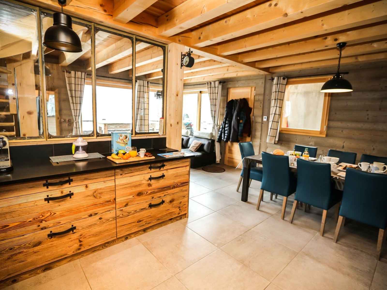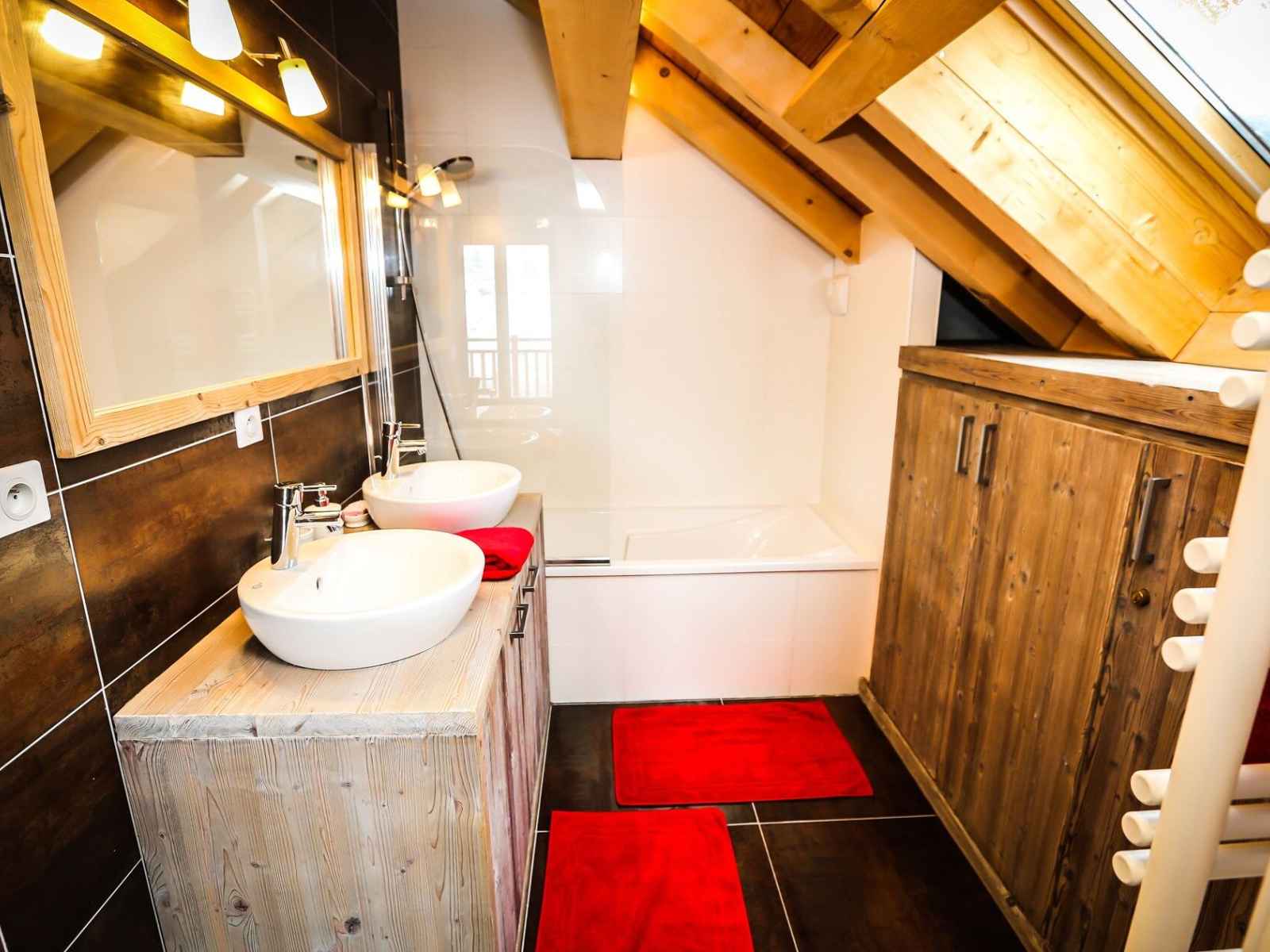 ses commerces. le chalet est tout équipé : une cuisine (four, micro-ondes, machine à café, appareils à raclette, lave vaisselle, plaque vitrocéramique, réfrigérateur, congélateur, grille-pain), un grand salon (canapé, écran plat, dvd, accès wifi), 4 chambres (lit double en 160 avec télévision, lit double en 140 avec télévision, 2 twins avec 2 lits simples et télévision chacune), une salle de bains (baignoire, wc), une salle de douche, 1 wc indépendant un balcon et deux terrasses (25 m² et 20 m²).