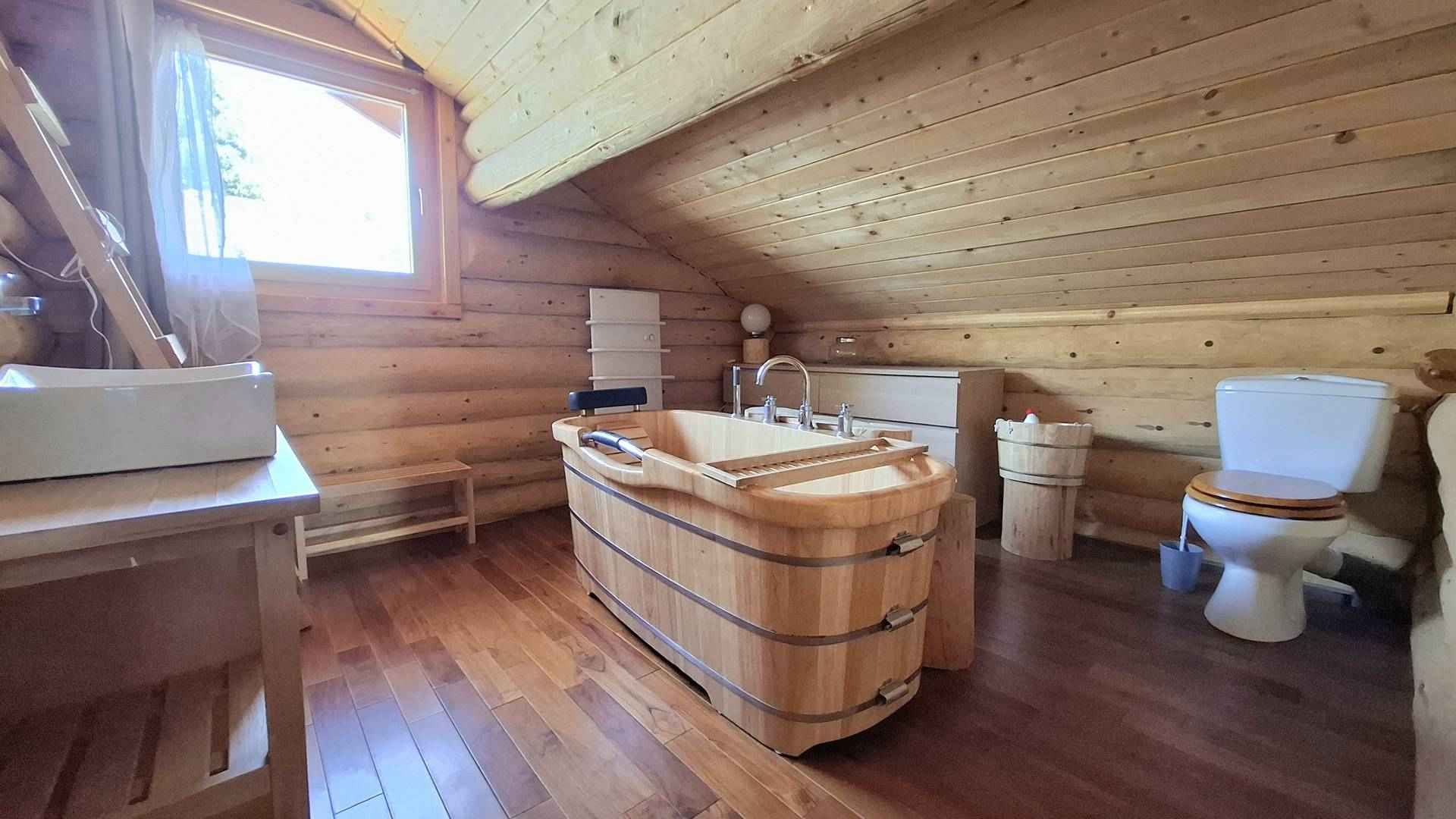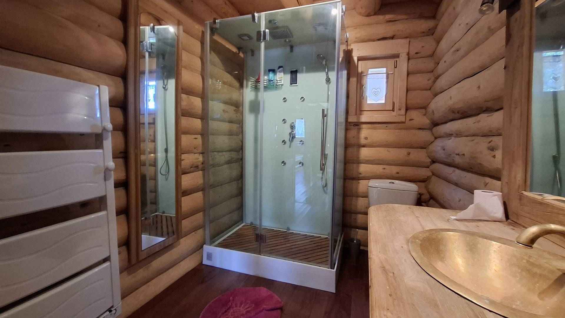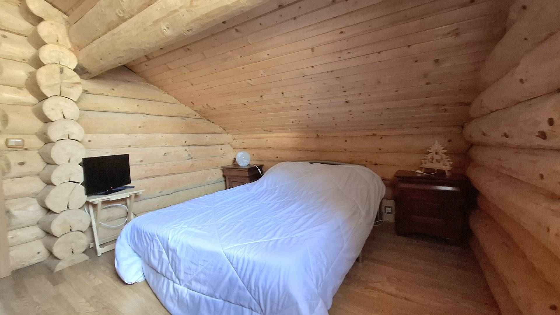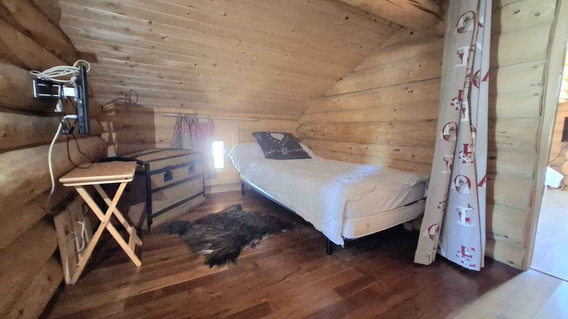 À l’étage, trois chambres avec lits doubles et télévision sont à votre disposition, dont deux donnent accès à un balcon commun. Une salle de bains se situe également à cet étage, ainsi qu’un espace ouvert comprenant un lit simple, une télévision et un rideau permettant de préserver l’intimité.