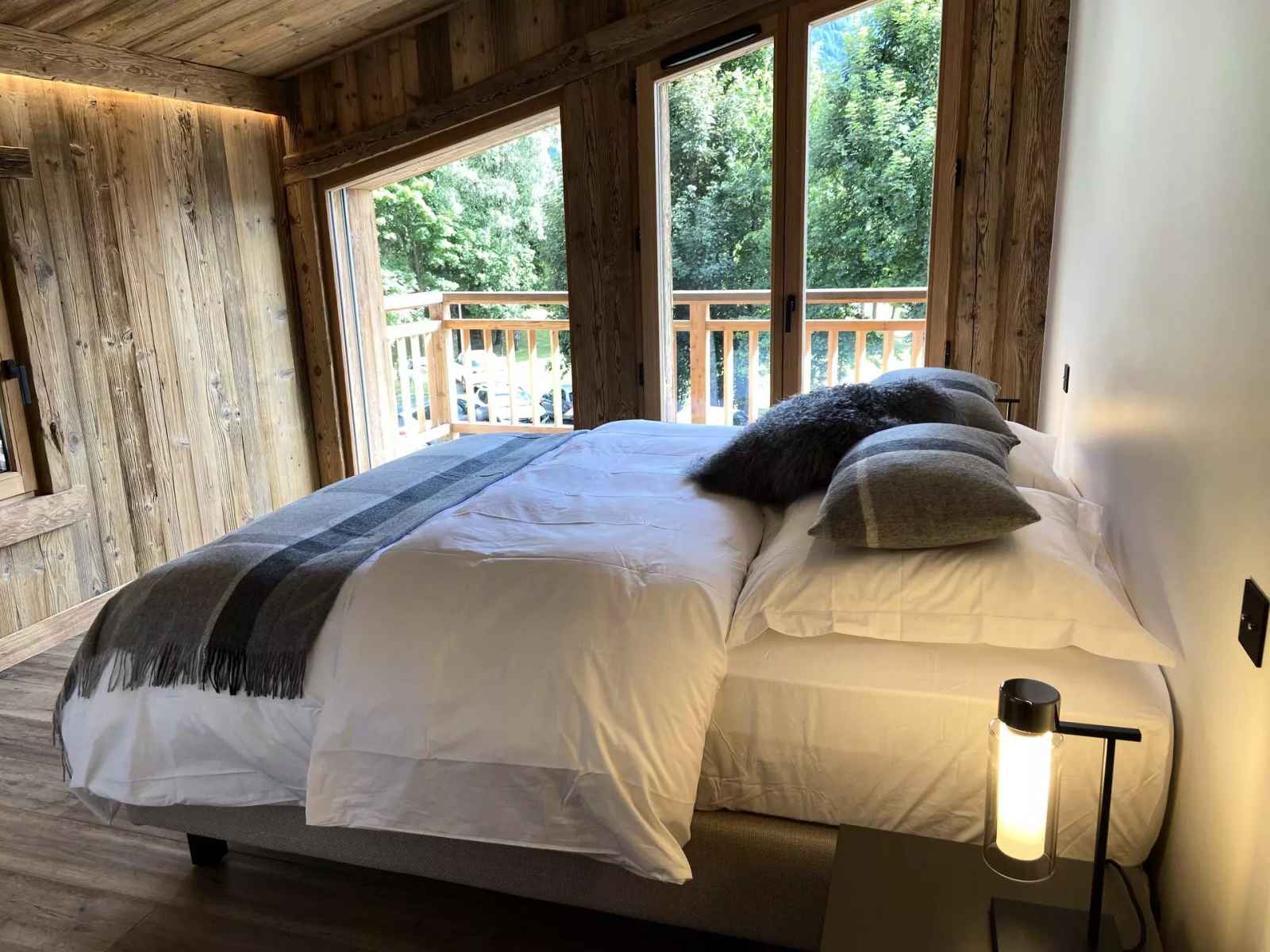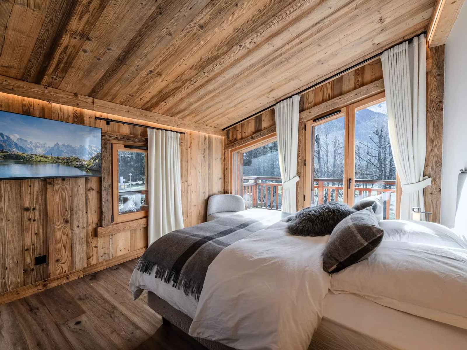 - Une chambre avec un lit double (160x200), TV, balcon vue Mont-Blanc, salle de douche et WC