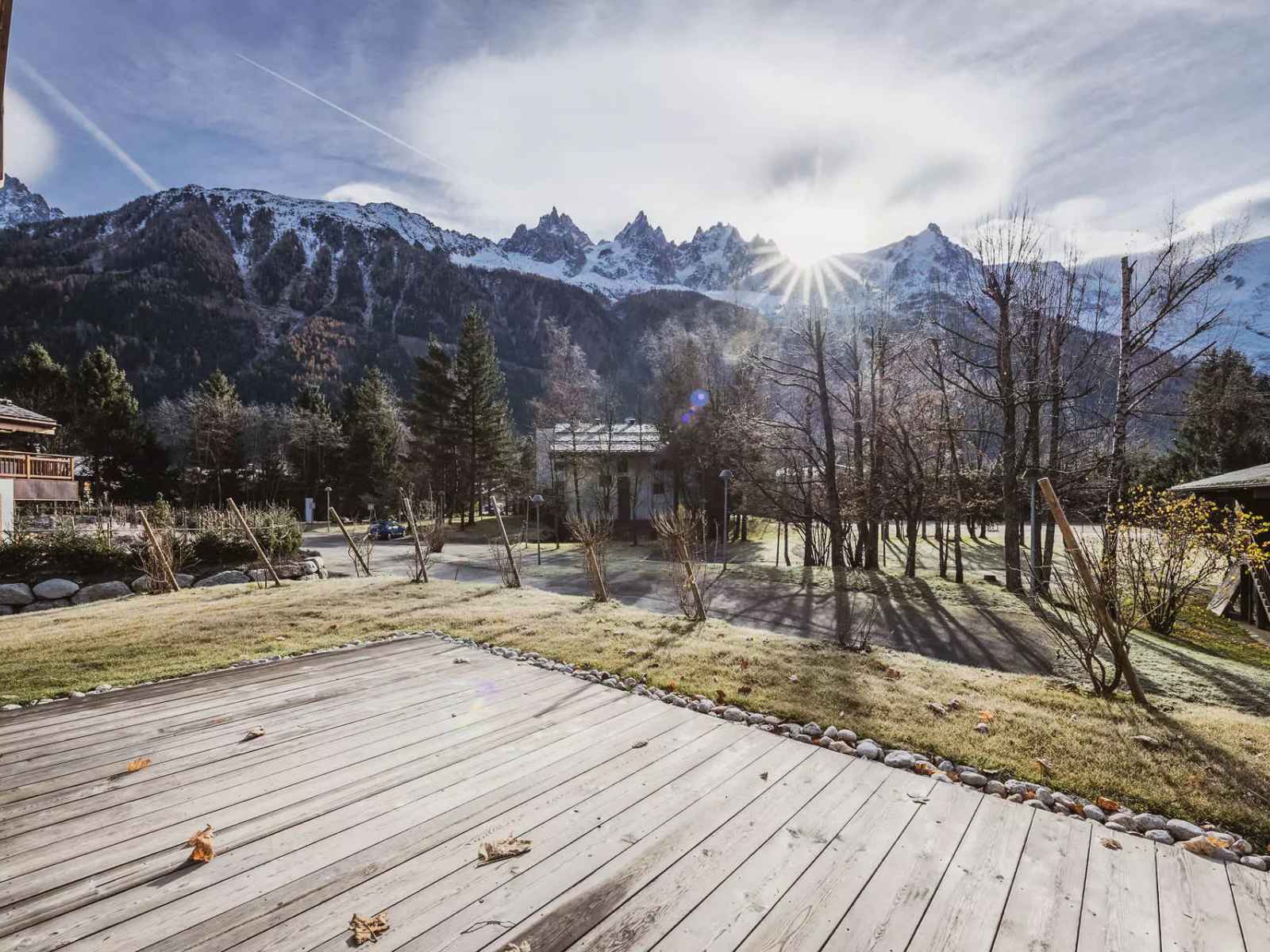- Terrasse équipée d'un salon de jardin et d'un jacuzzi, jardin avec vue sur la chaine du Mont-Blanc