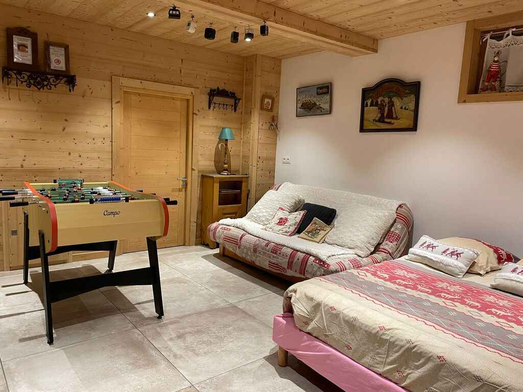 séjour sans couchage, tv, 5 chambres avec tv, lecteur dvd, connexion wifi, baby foot, chauffage