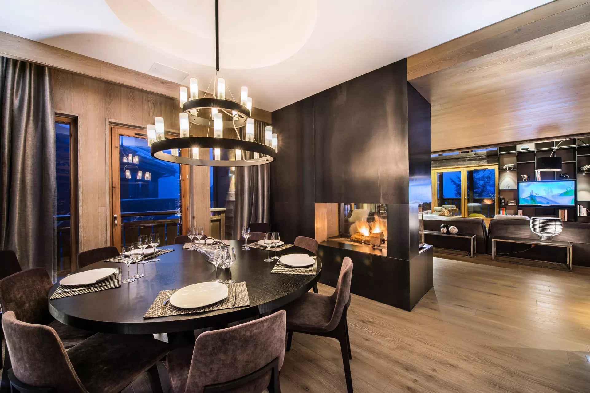 A l'entrée de courchevel moriond, le chalet overview est a l'intersection du centre et de ses restaurants, bars et commerces et le domaine skiable et ses pistes de ski et remontées.