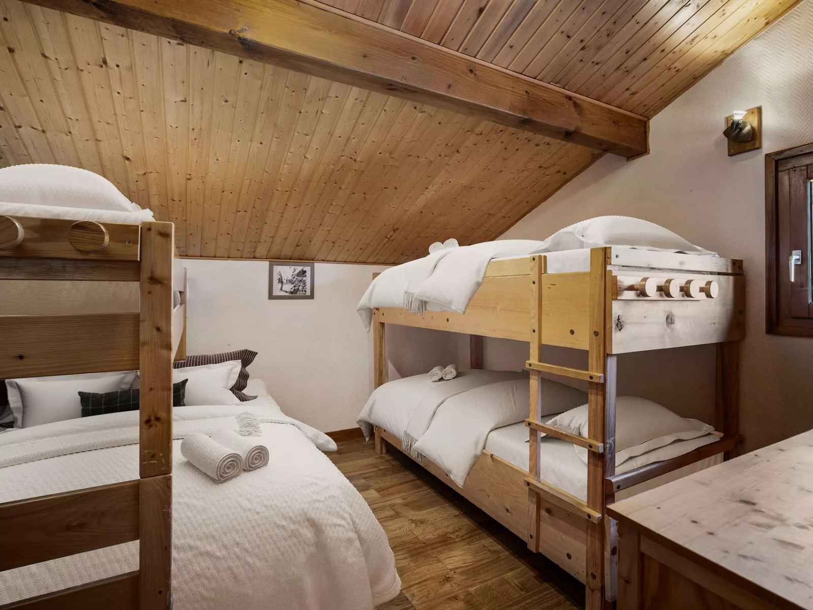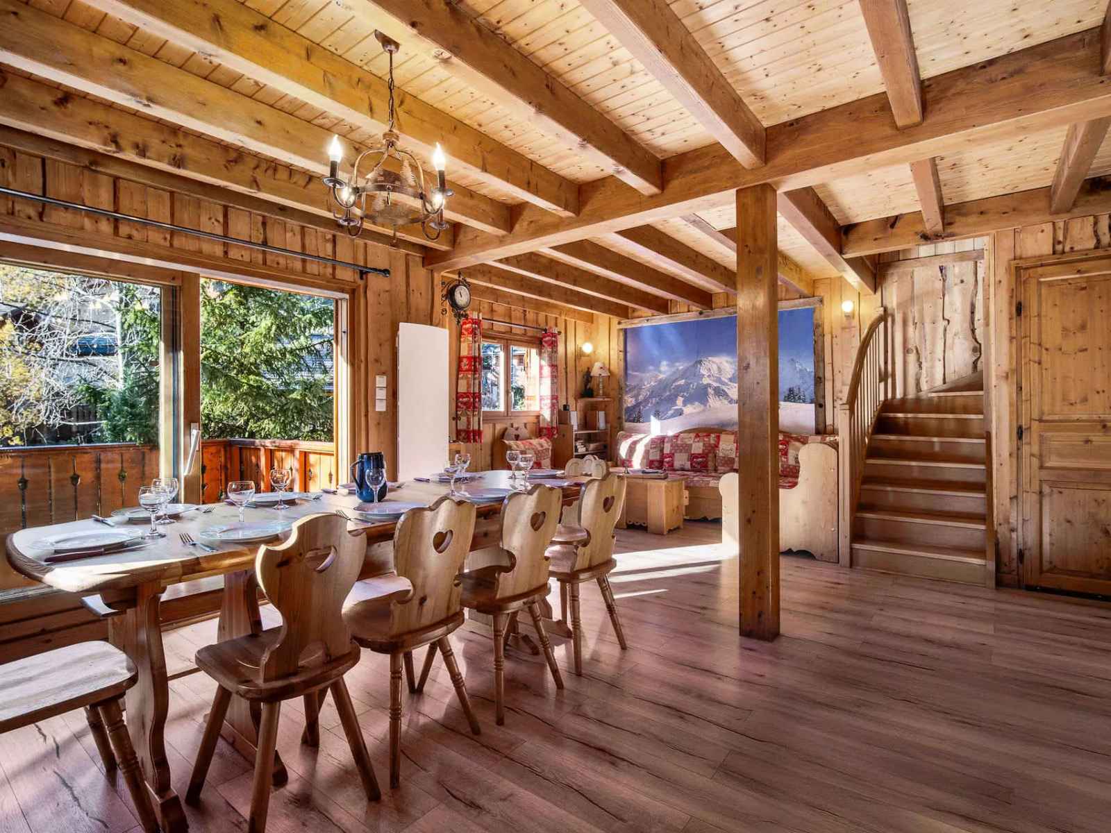 authentique chalet d’inspiration savoyarde, alliant élégance alpine et charme traditionnel, pouvant accueillir confortablement jusqu’à 13 convives (6 adultes et 7 enfants).