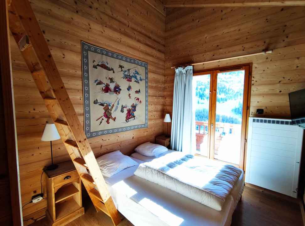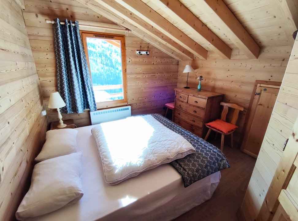 Chalet de 6 couchages. Chambre 1 : lit double 160, chambre 2 : lit double 2 matelas collés 90 (180) et une mezzanine avec 2 matelas 1 place, convient pour des enfants/adolescents.