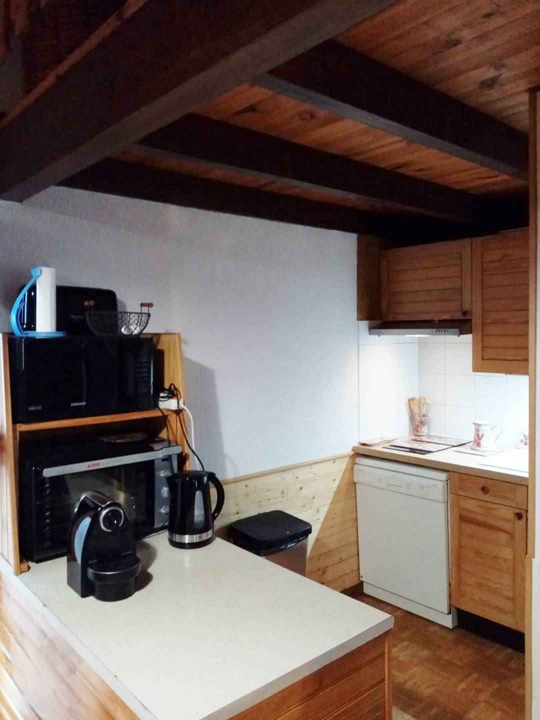 la kitchenette est équipée d’un lave vaisselle, d’un lave linge, d'une plaque