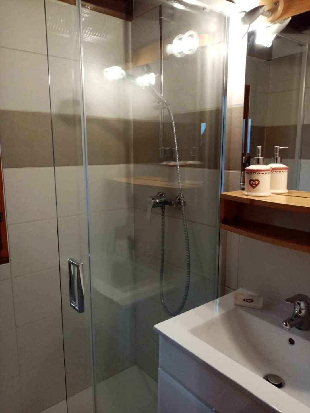 Les toilettes sont séparées.A l’étage, une mezzanine avec deux lits en 90 cm et placards de rangement.