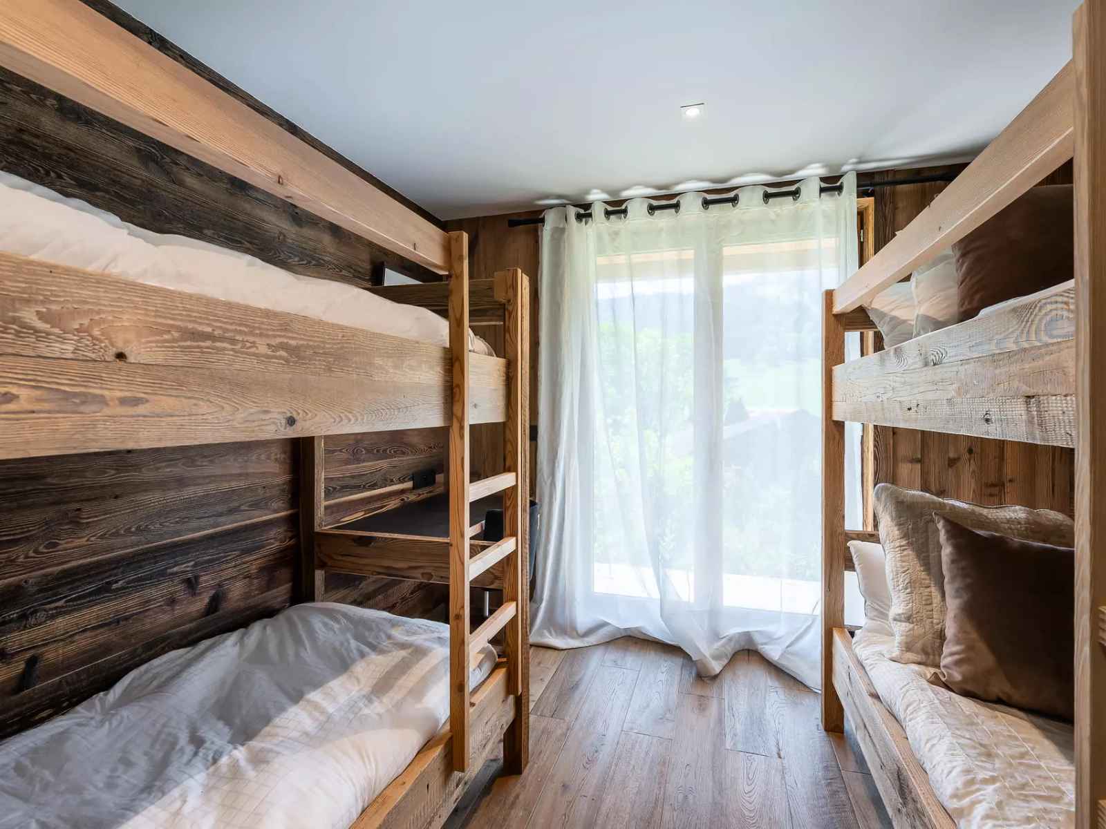 - Chambre enfants : 2 lits superposés (4 couchages), bureau, TV, terrasse et salle de douche avec toilettes