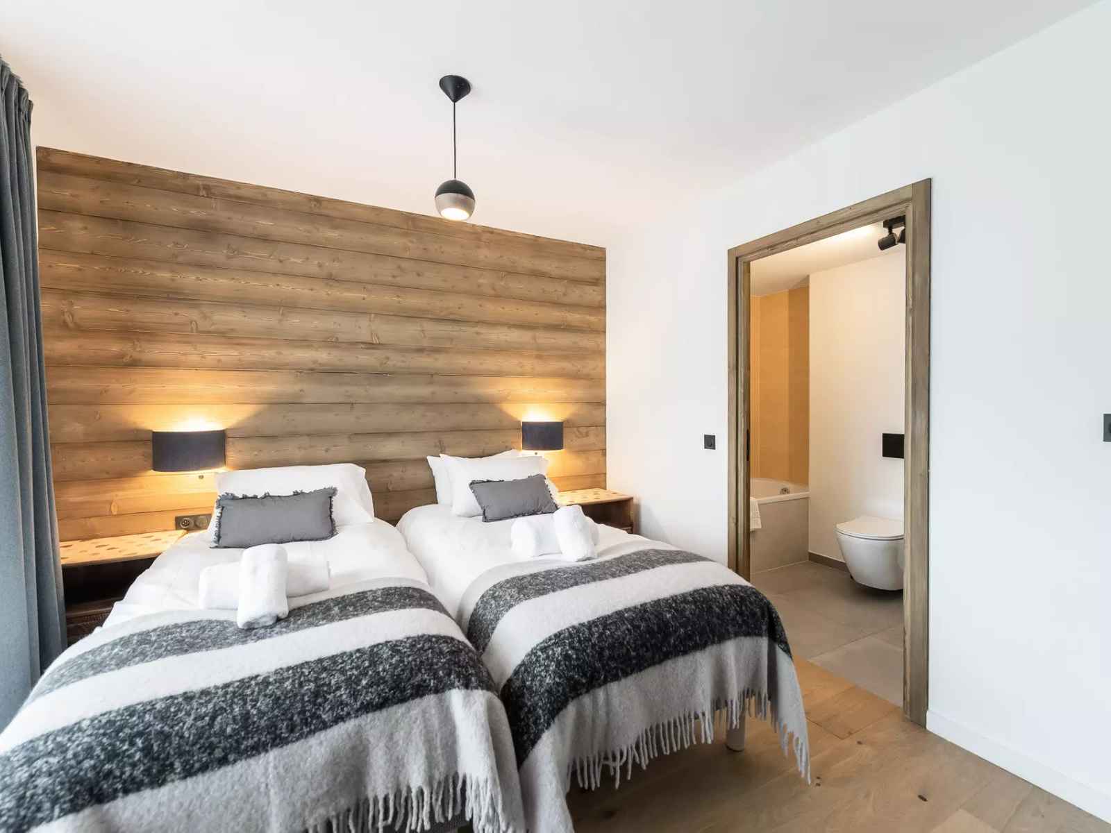 - Chambre 2 : lit double 180x190 séparable, balcon, salle de bain et WC en-suite (douche+baignoire)