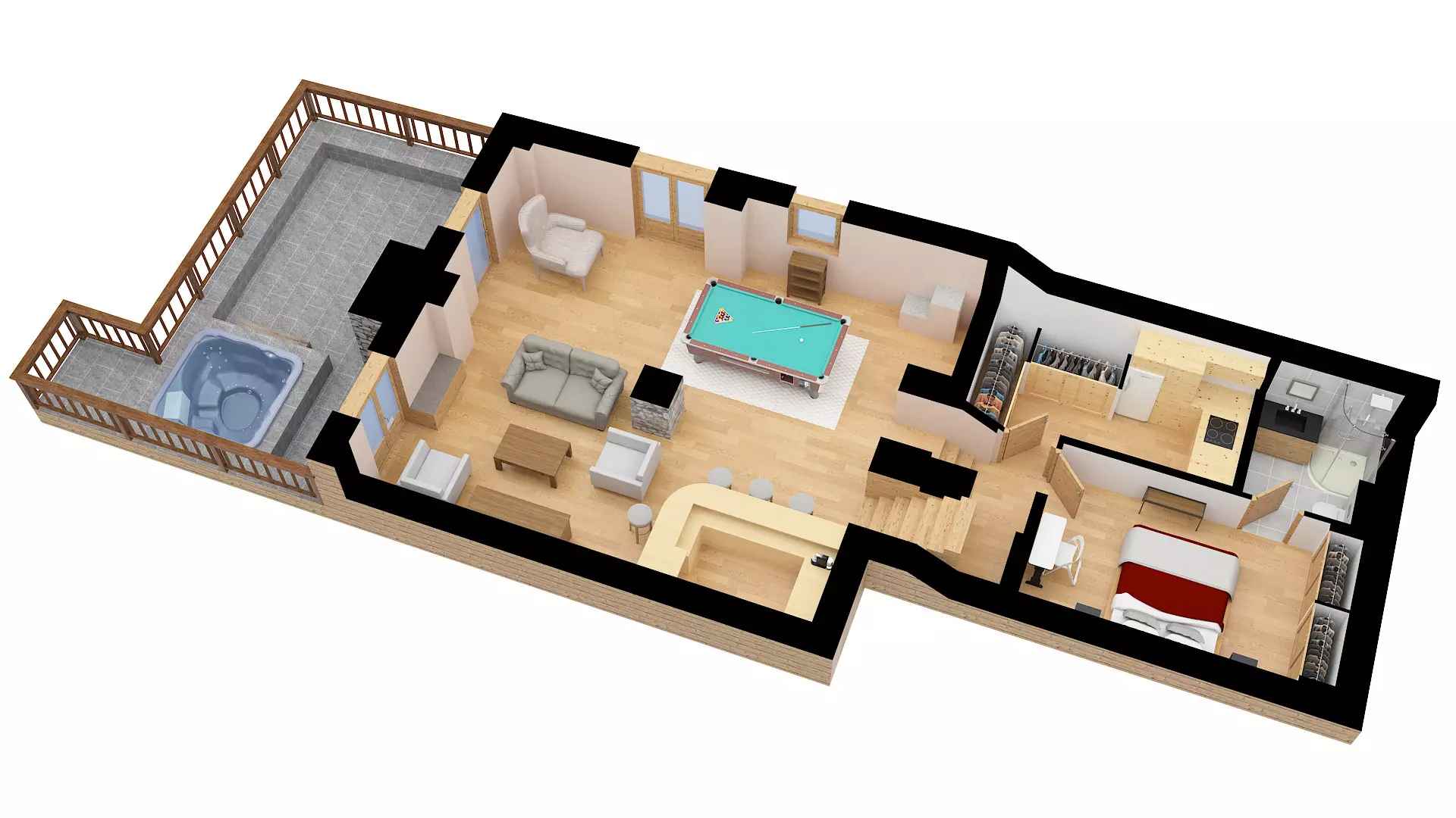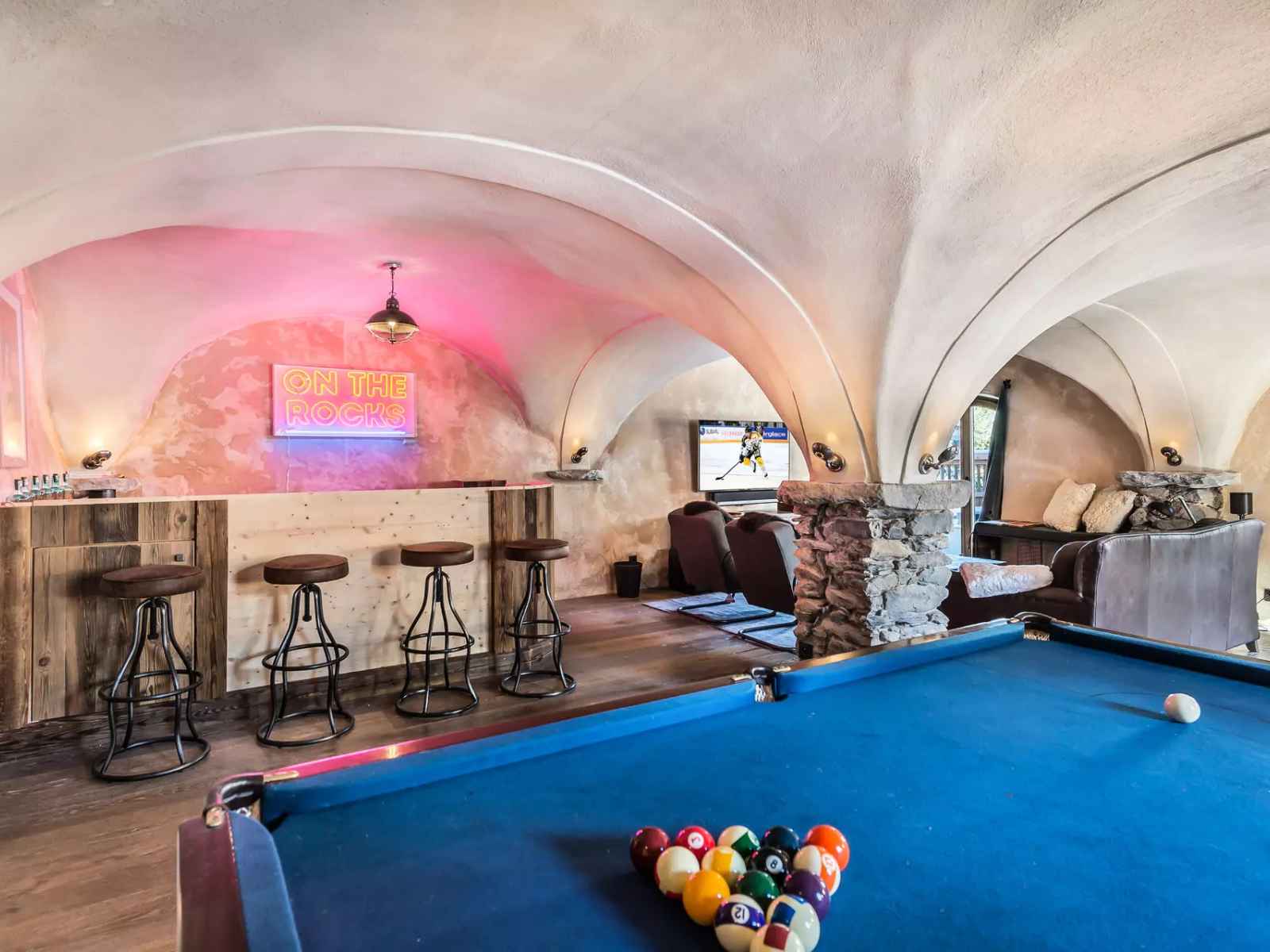 - Grand salon avec billard, apple TV (TNT, chaînes anglaises) avec système "sonos", un bar et jacuzzi extérieur