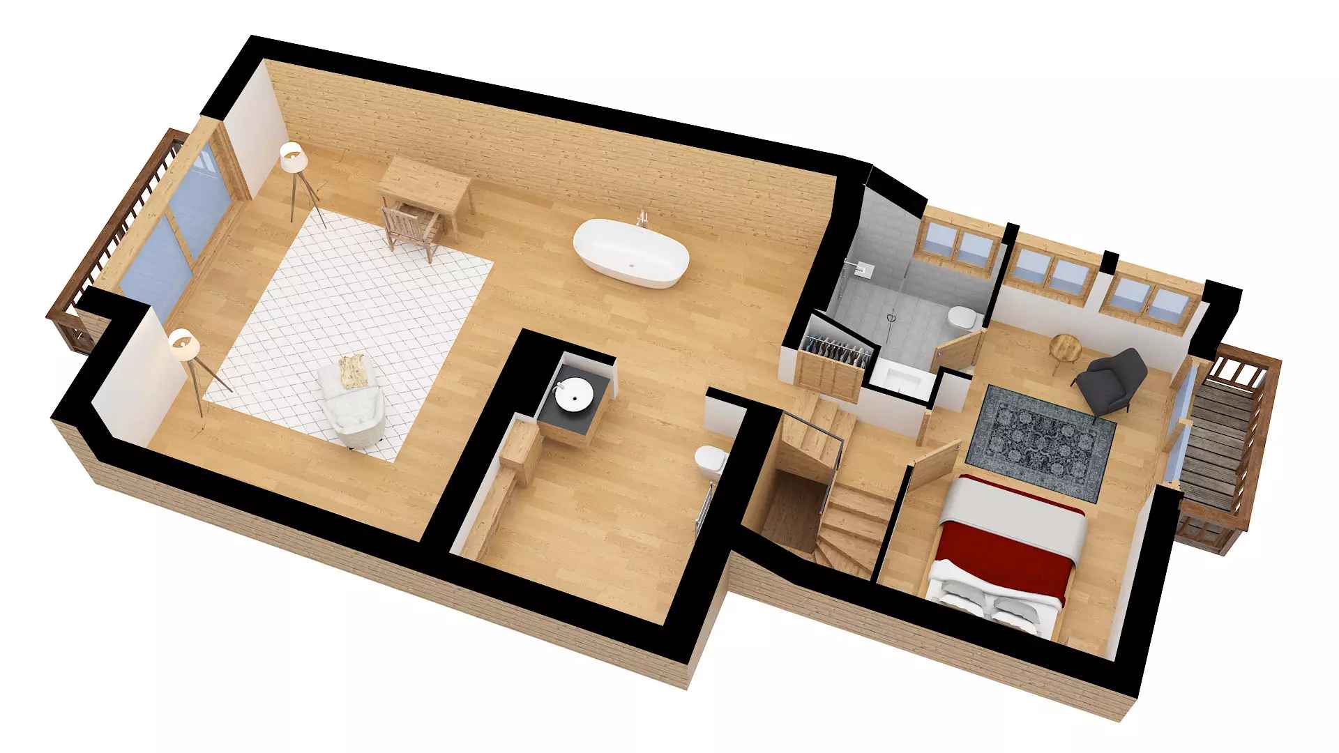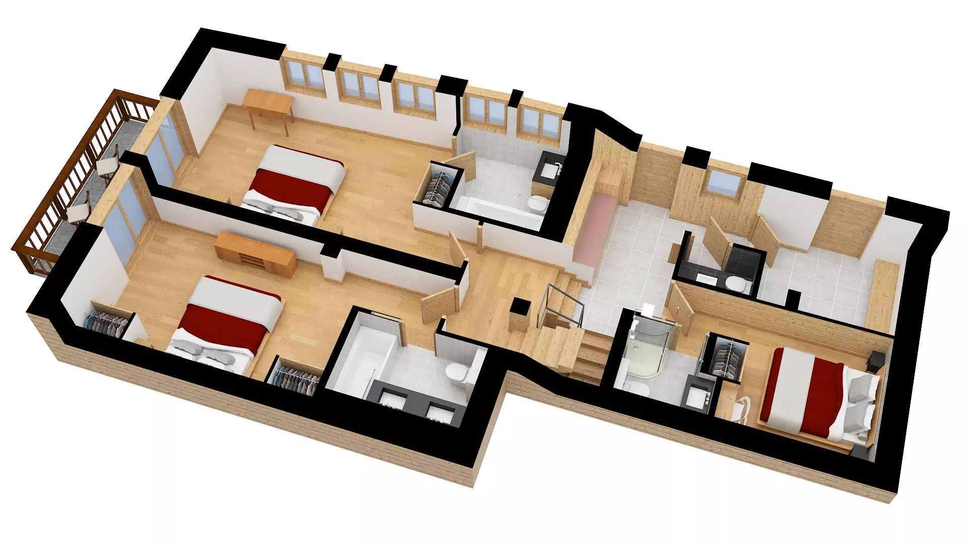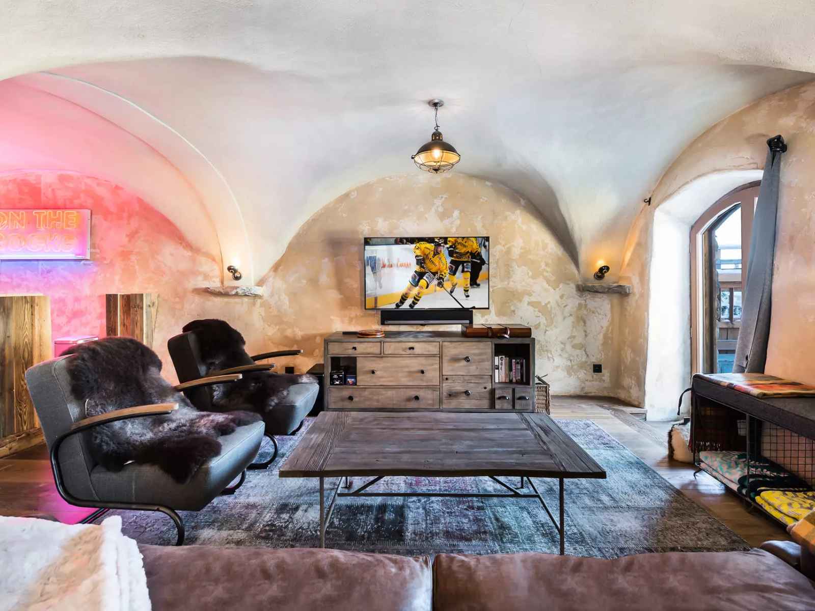chalet les voûtes d'environ 340m², disposant de 5 chambres pour 10 adultes. il est situé à 145m de l'arrêt de ski-bus gratuit qui mène à méribel centre et à 250m de la télécabine l'olympe qui mène directement au front de neige de méribel.