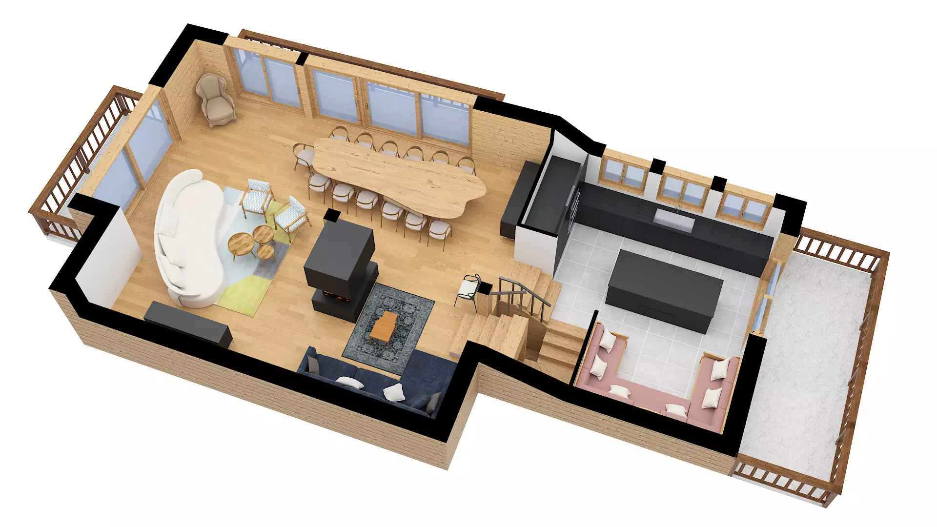 - Bel espace de vie avec salle à manger et salon avec cheminée
