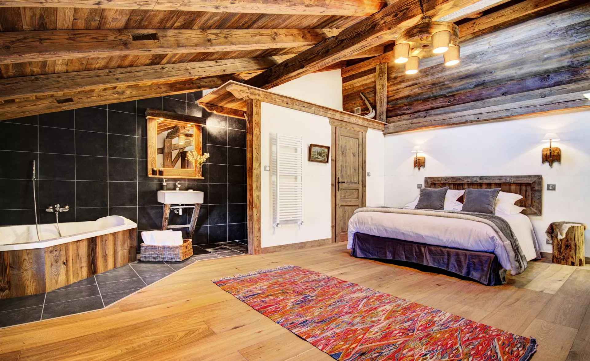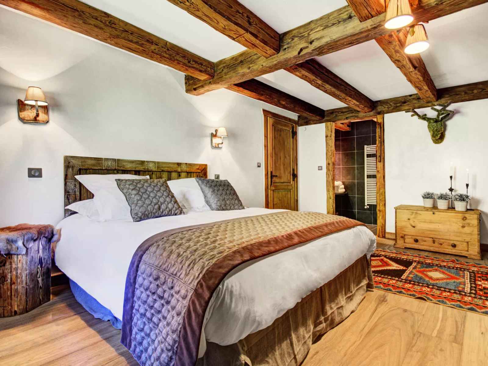 Avec sa charpente majestueuse, ses volumes généreux et sa pièce de vie chaleureuse centrée autour de la cheminée, La Ferme de Marie promet de magnifiques soirées d’hiver en famille ou entre amis. À l’extérieur, la terrasse panoramique, le sauna bulle et le bain nordique vous offrent une parenthèse de bien-être face aux sommets.