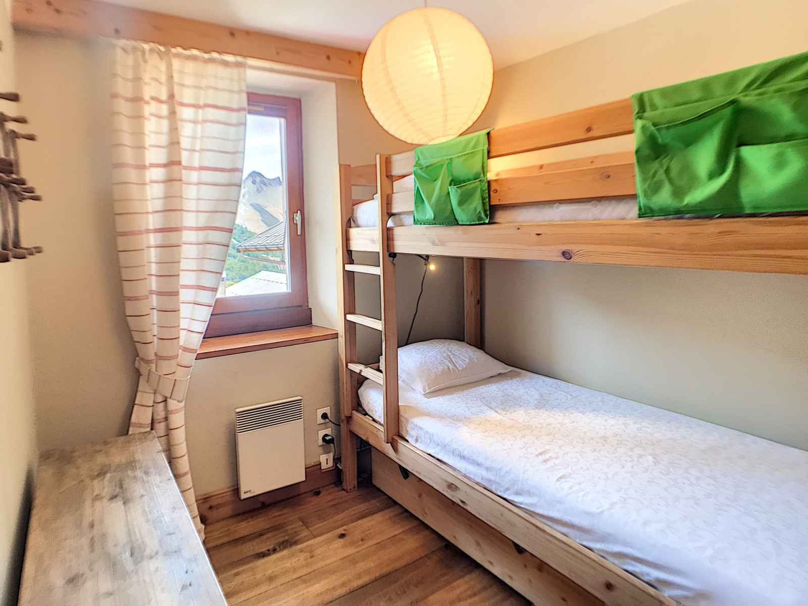 Station 4 FLOCONS OR Niveau 0 : Chambre 1 : 1 lit double Chambre 2 : 2 lits simples superposés (Le couchage en hauteur ne convient pas aux enfants de moins de 6 ans.) Salle de bain avec baignoire et WC Casier à ski avec sèche-chaussures Niveau 1 : Chambre 3 : 1 lit double Chambre 4 : 2 lits simples superposés (Le couchage en hauteur ne convient pas aux enfants de moins de 6 ans.) Salle de bain avec baignoire. WC séparés. Niveau 2 : Grand séjour sous poutres apparentes avec cheminée (bois non fournis), canapé d'angle, télévision et lecteur DVD. Balcon. Cuisine ouverte avec 4 plaques vitro-céramique, réfrigérateur, four traditionnel et micro-ondes, lave-vaisselle, bouilloire, grille-pain et cafetière électrique Prestations incluses en hiver et hors courts séjour : Linge de lit, torchons et tapis de bain inclus et livrés dans l'appartement. Serviettes de toilette non inclus. Autres : Sèche-chaussures et casier à skis dans l'entrée du chalet Parking à proximité des pistes et du départ des remontés mécaniques à Saint Martin de Belleville. Chalet non fumeur Animaux non acceptés Classement ministeriel N°73257000517DP