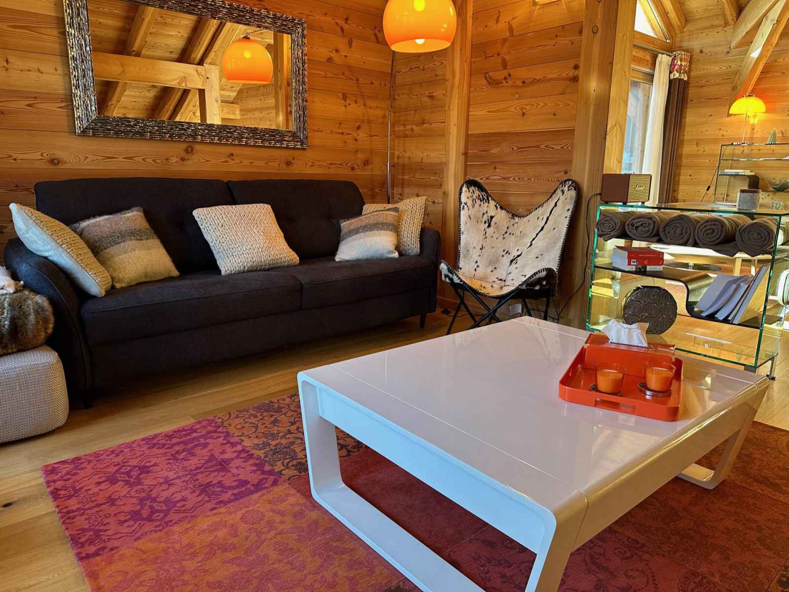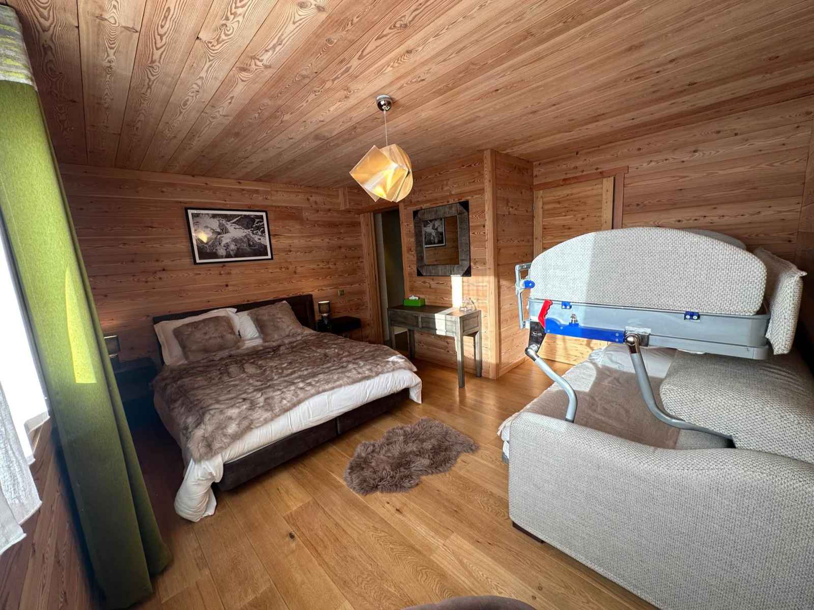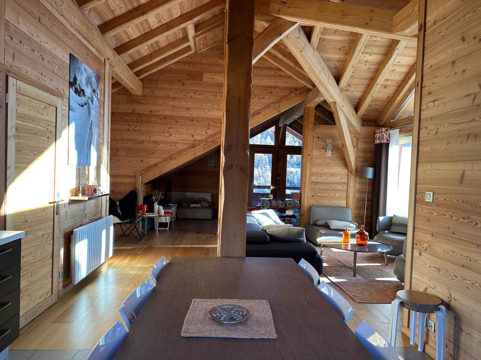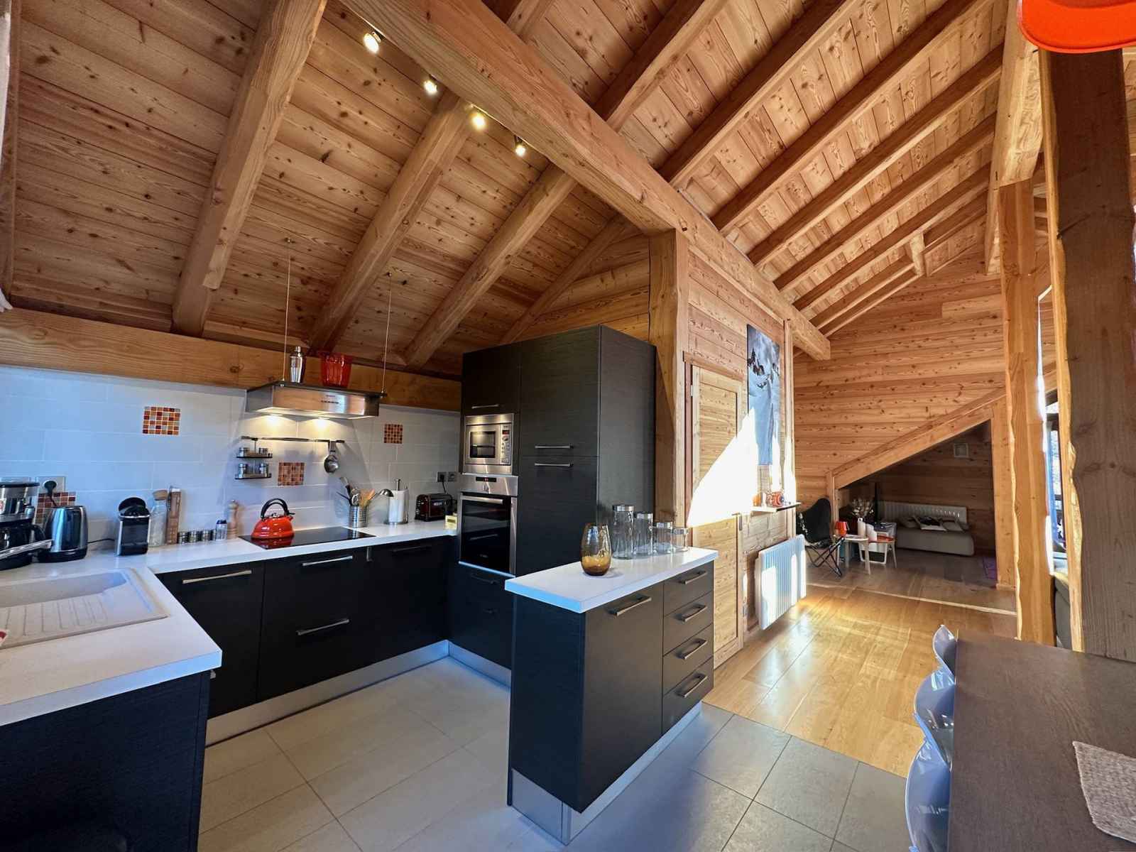 entrée avec un grand placard équipé d'un sèche chaussures. Il y a une chambre avec lit double en 160x200 , une salle d'eau fermée, des WC séparés et un dressing. Au même étage des WC avec lave-mains sont indépendants, un accès au garage où se situe un rack à skis. En descendant à l'étage inférieur nous arrivons sur 2 chambres doubles avec chacune leur salle d'eau, leur WC ainsi qu'un dressing, l'une d'elle a deux lits simples superposés en 80x190 (couchages réservés pour des enfants !). Au même étage nous avons une petite bianderie et surtout un spa avec jacuzzi et sauna... le rêve pour un séjour parfait. Au premier étage une pièce à couper le souffle s'ouvre à vous : une cuisine ouverte, avec à coté une grande table à manger avec un balcon. Ensuite nous avons deux espaces salon dont un est un coin télévision. Le balcon fait le tour du chalet. Chalet équipé de de tous les équipements de cuisine, congélateur, d'une chaise haute bébé, d'un appareil à raclette, d'un appareil à fondue ainsi que d'une cafetière à filtres et d’une Nespresso. Animaux interdits. Toutes nos locations sont strictement NON-FUMEUR. De plus, notre agence vous propose la réservation de matériel de ski et de forfaits pour faciliter votre séjour. Le chalet dispose d’un sèche chaussures et de deux places de garage privées.