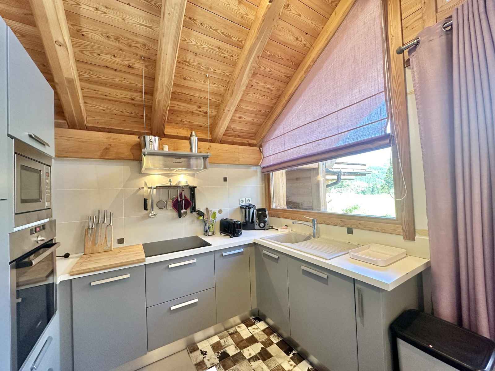 séjour sans souci et parfaitement confortable. Ce chalet dispose de deux places de garage et d'une grande entrée équipée de sèche-chaussures et d'un WC. À ce même niveau, vous trouverez une première chambre double avec une salle d'eau, des WC séparés et un grand dressing. Au premier étage, une chambre double, une salle TV pouvant se transformer en une seconde chambre double, une salle d'eau et des WC vous attendent. Vous serez séduit par le grand séjour avec salle à manger et cuisine ouverte, offrant une hauteur sous plafond impressionnante et une vue imprenable sur les montagnes. À l'étage inférieur (-1), le chalet propose une chambre double avec salle d'eau, WC et dressing, ainsi qu'une chambre double avec lit superposé, salle d'eau, dressing et WC. La cuisine, parfaitement équipée, comprend tout le nécessaire pour des repas gourmands : fondue, cocotte minute, pierrade, raclette, four micro-ondes, four traditionnel, réfrigérateur, congélateur, bouilloire, machine à café Nespresso, grille-pain, et lave-vaisselle. Un WC et une salle d'eau séparée ajoutent encore au confort de ce chalet. Pour des moments de détente absolue, profitez du spa et du sauna intégrés. Ce chalet réunit tous les atouts pour un séjour inoubliable dans un cadre enchanteur. De plus, notre agence vous propose la réservation de matériel de ski et de forfaits pour faciliter votre séjour.