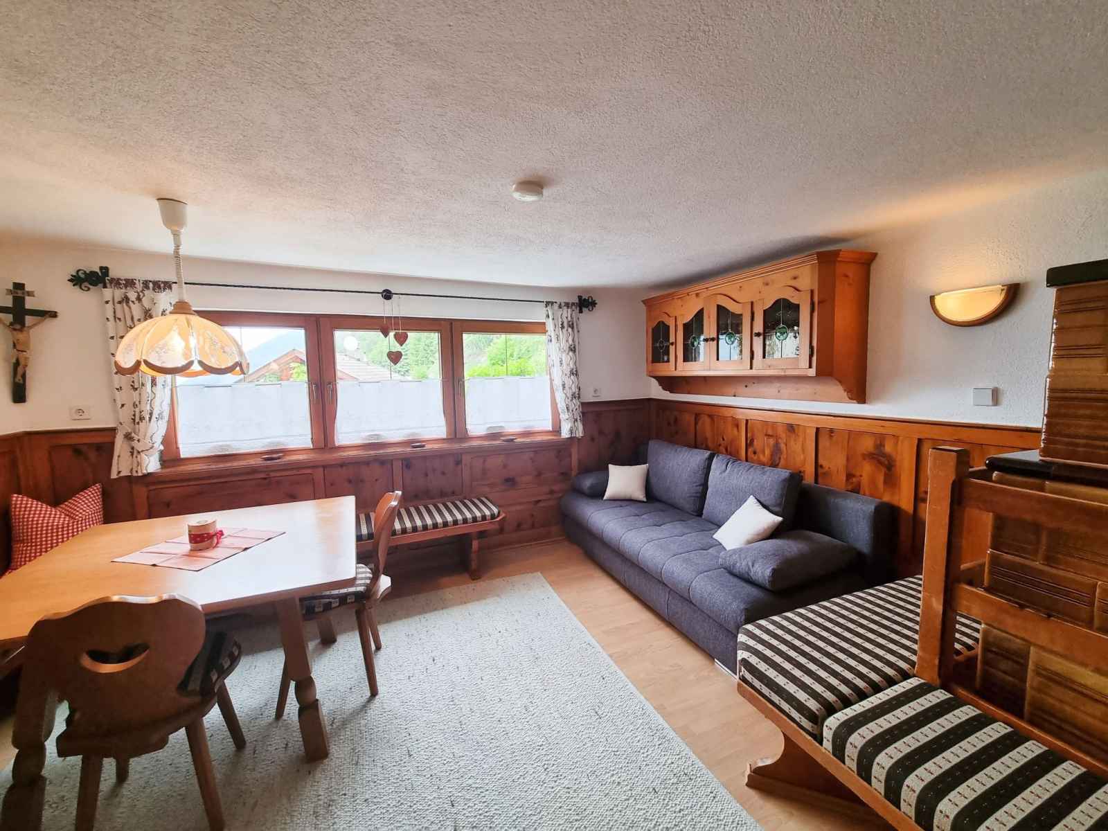 "egger", maison 4 pièces 110 m2 sur 2 niveaux. aménagement plaisant: séjour/salle à manger avec 1 divan-lit, table pour les repas, tv (satellite) et poele de faience. cuisine (four, lave-vaisselle, 4 plaques vitrocéramiques, grille-pain, bouilloire électrique, micro-ondes, cafetière électrique) avec coin repas. wc séparé. À l'étage