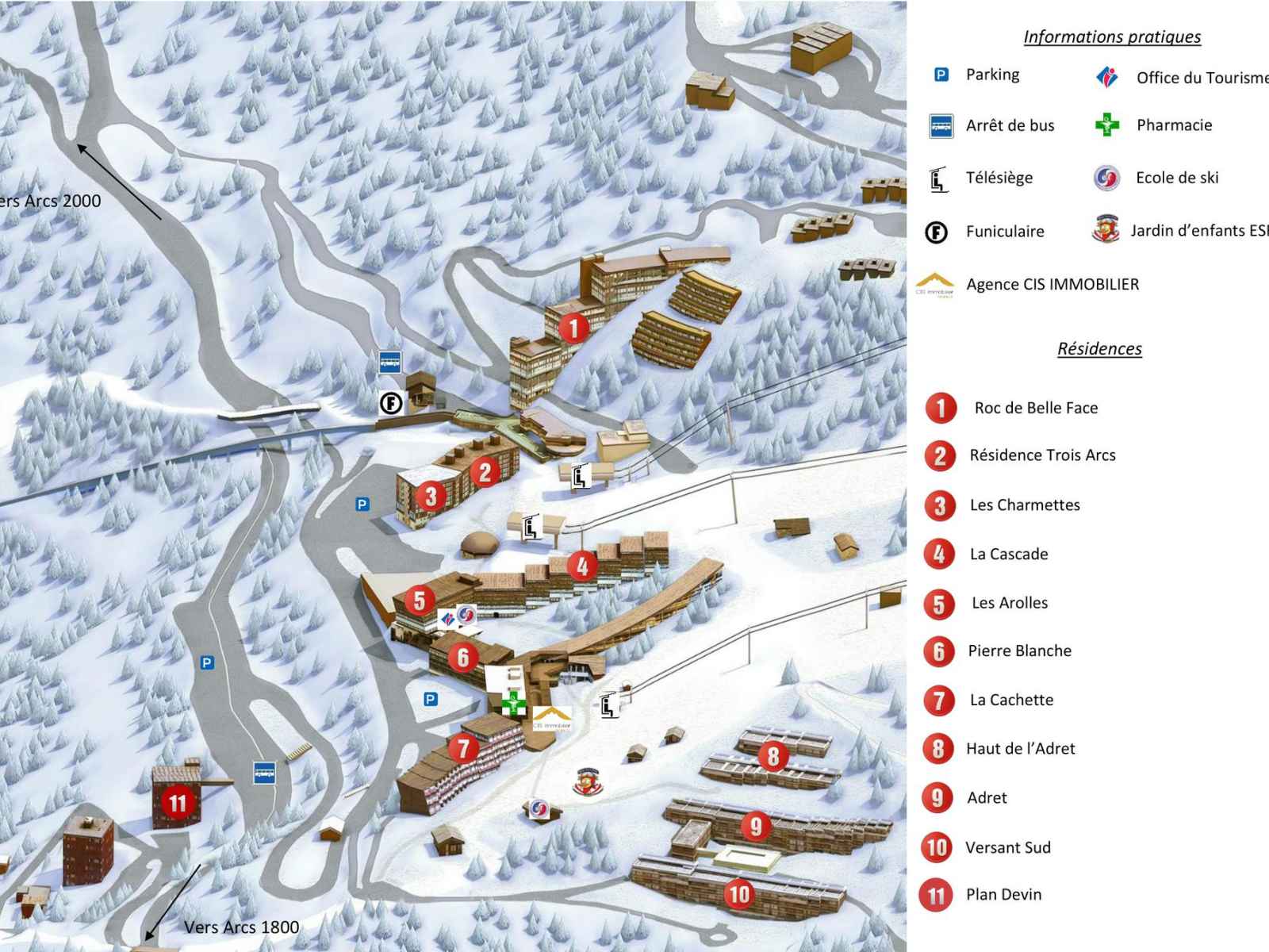 cette résidence typique d'arc 1600 est idéalement située au pied des pistes et des remontées mécaniques et à 2 pas du centre station avec ses commerces et restaurants.
