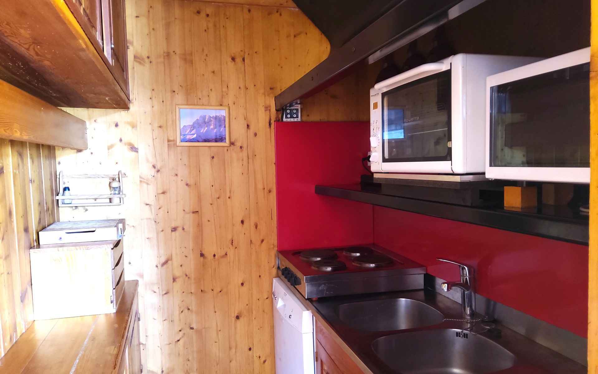 pour vos vacances au ski ou vos vacances d'été dans la station d'arc 1600, réservez cet appartement de 2 pièces cabine situé au pied des pistes qui bénéficie d'un balcon exposé sud avec une vue sur la station.