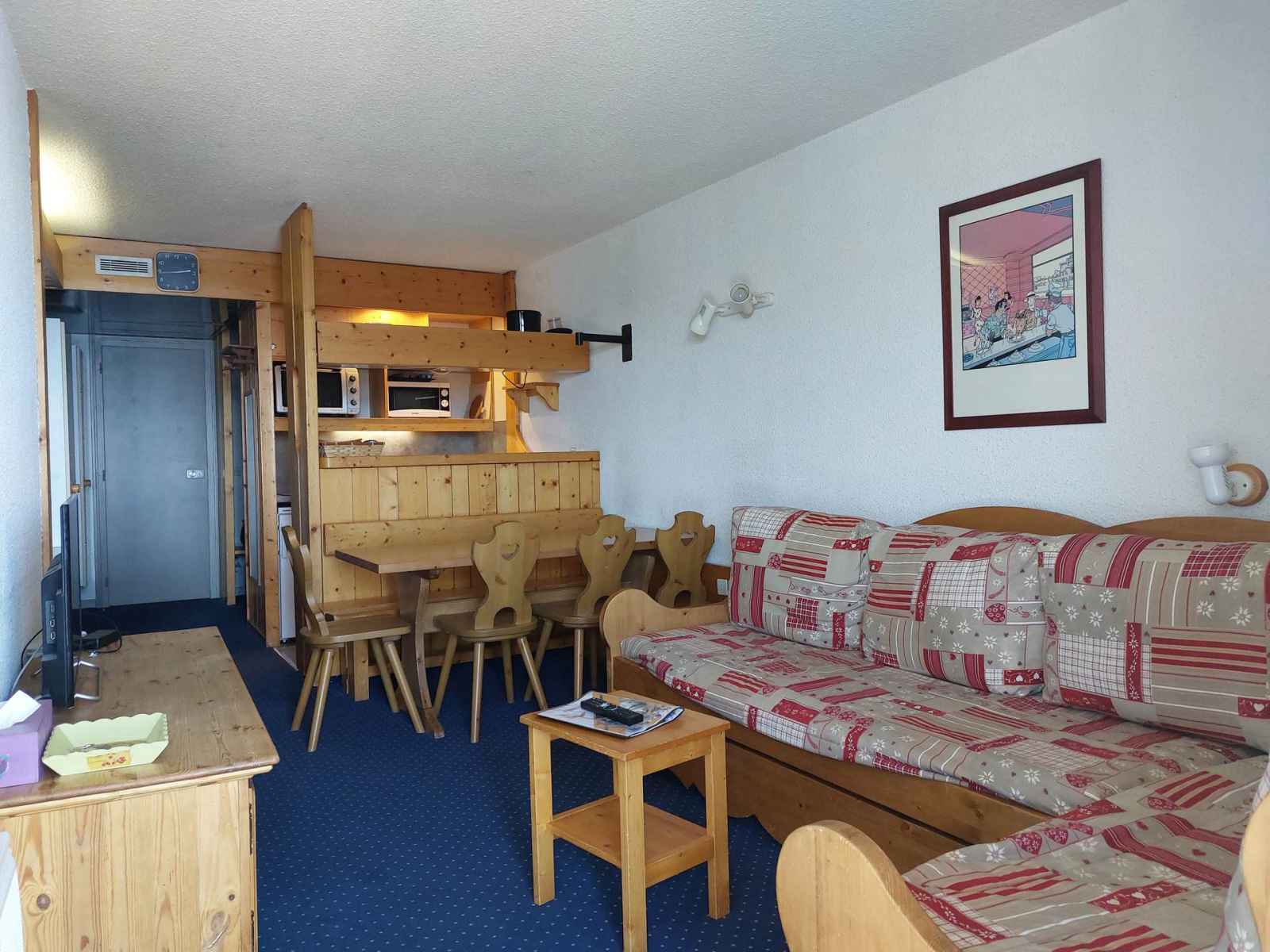 De part la conception du quartier (résidences entourant une place commerçante), les hébergements peuvent subir des nuisances sonores (circulation piétonne, après ski festif, livraisons le matins...). Non recommandé aux vacanciers recherchant une situation parfaitement calme.