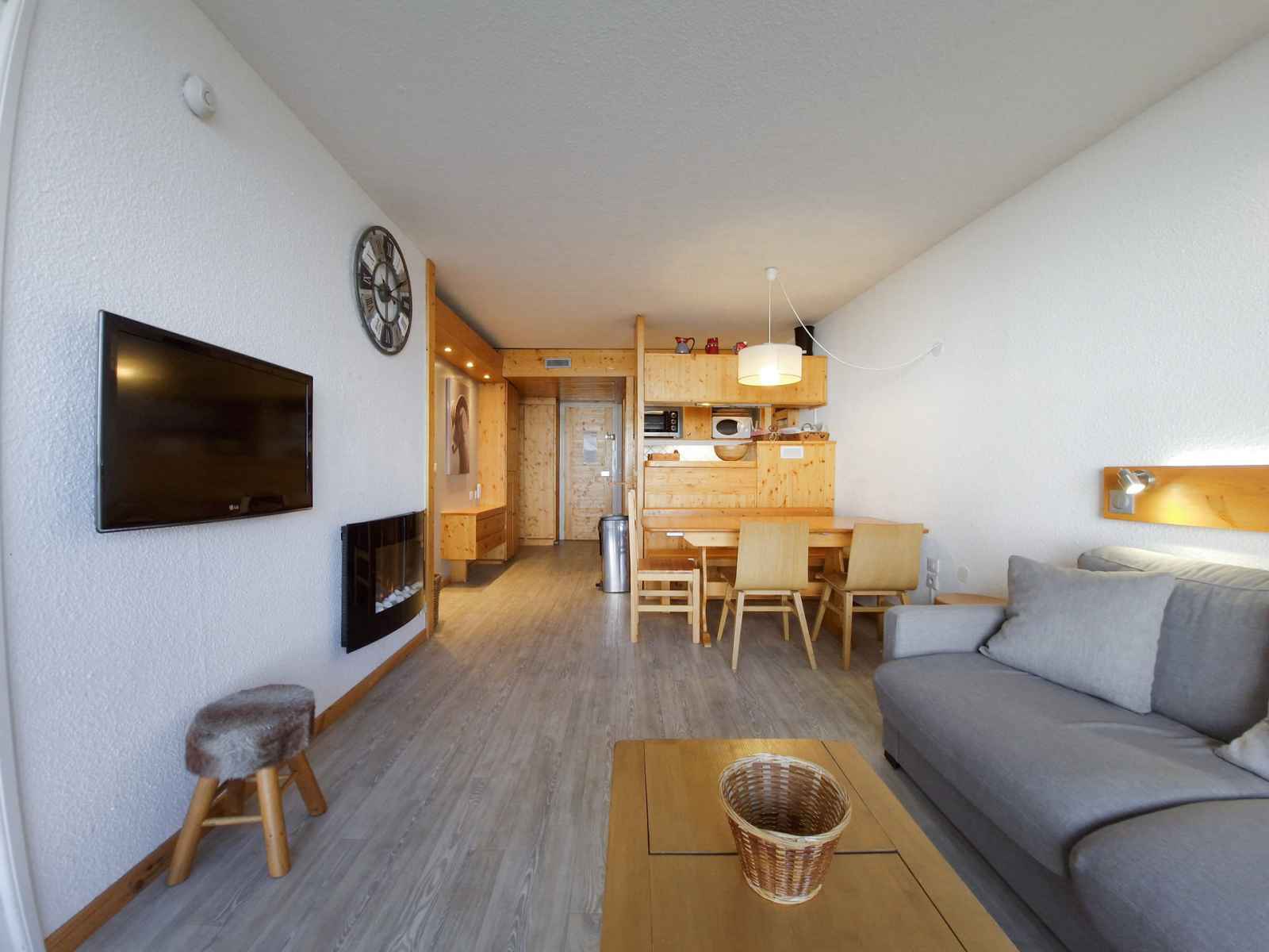 pour vos vacances au ski ou vos vacances d'été aux arcs 1800, réservez ce charmant 2 pièces, qui bénéficie d'un balcon exposé sud-ouest avec une vue plongeante sur la vallée.