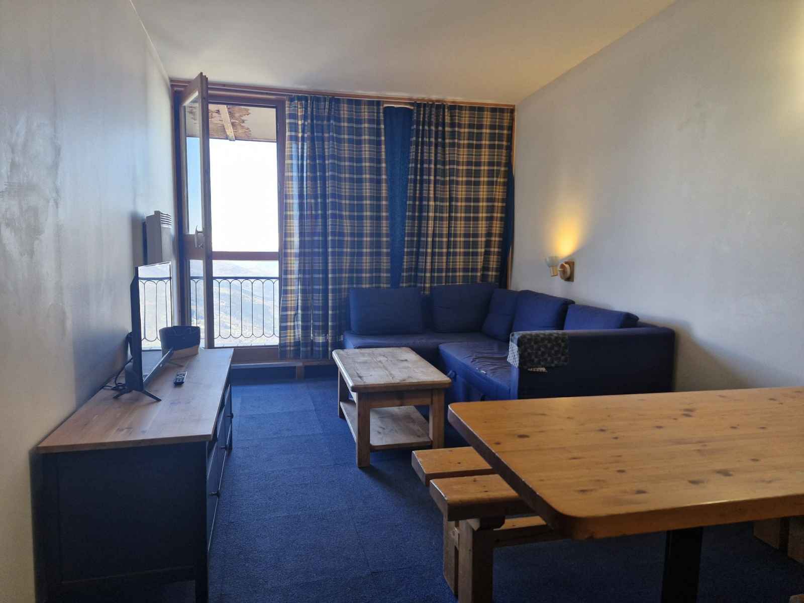 pour vos vacances au ski ou vos vacances d'été aux arcs 1800, réservez cet appartement 2 pièces qui bénéficie d'un balcon exposé sud-ouest, vous offrant une vue sur les sommets et la vallée.