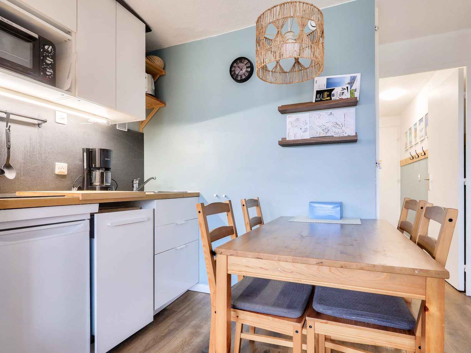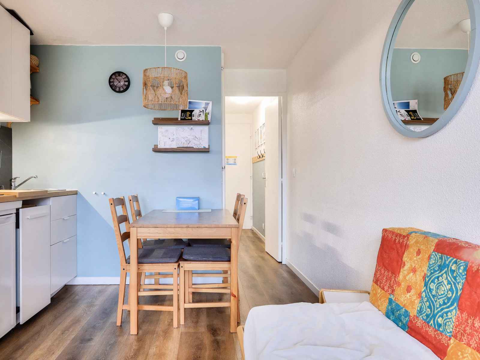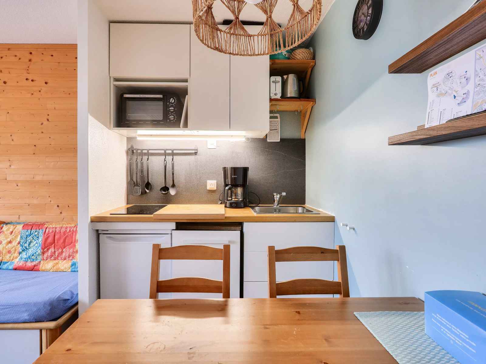 Votre location de vacances comporte : 1 séjour chaleureux, 1 coin cuisine équipé, 1 chambre joliment décoré, 1 salle de bains et 1 wc.
