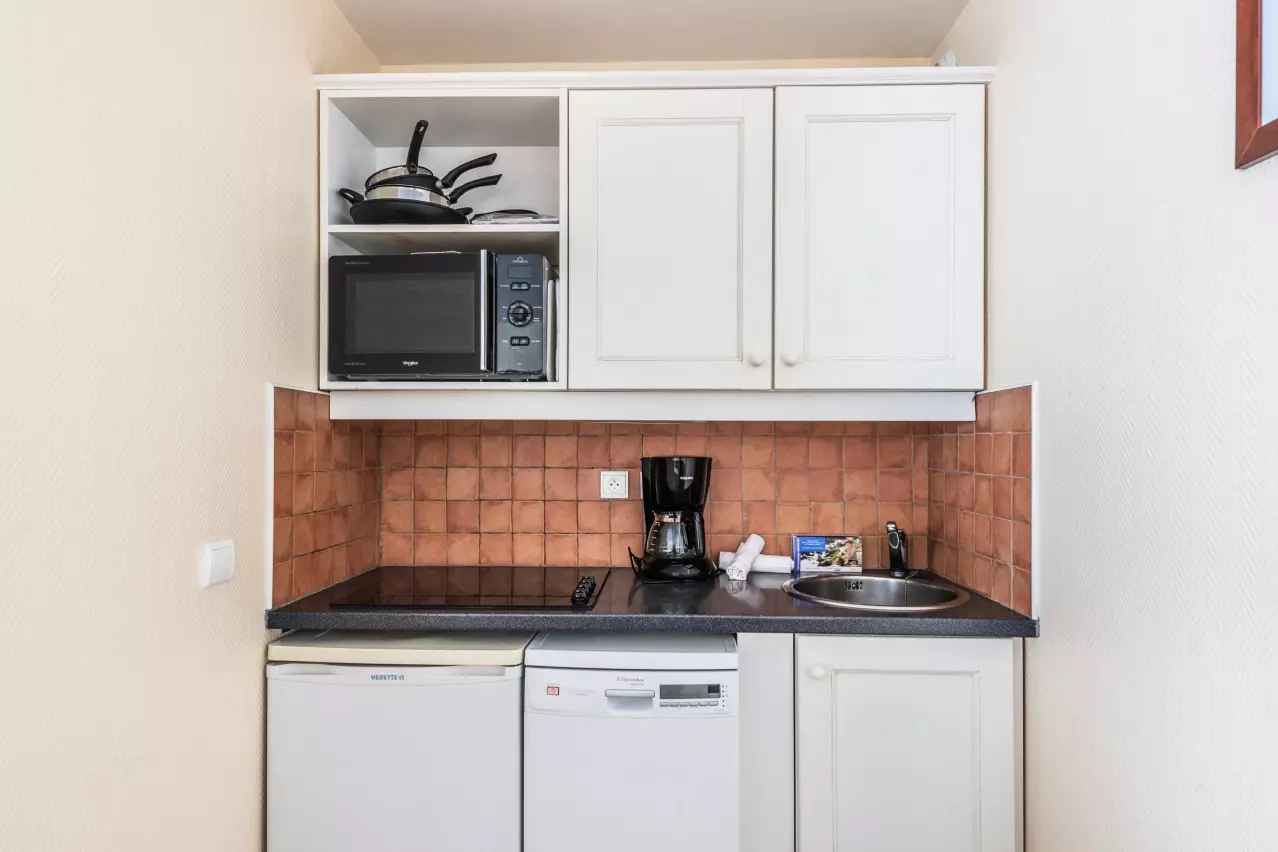 • Cuisine : Bouilloire, Cafetière, Grille-pain, Lave-vaisselle, Plaque de cuisson, Réfrigérateur, Vaisselle et couverts