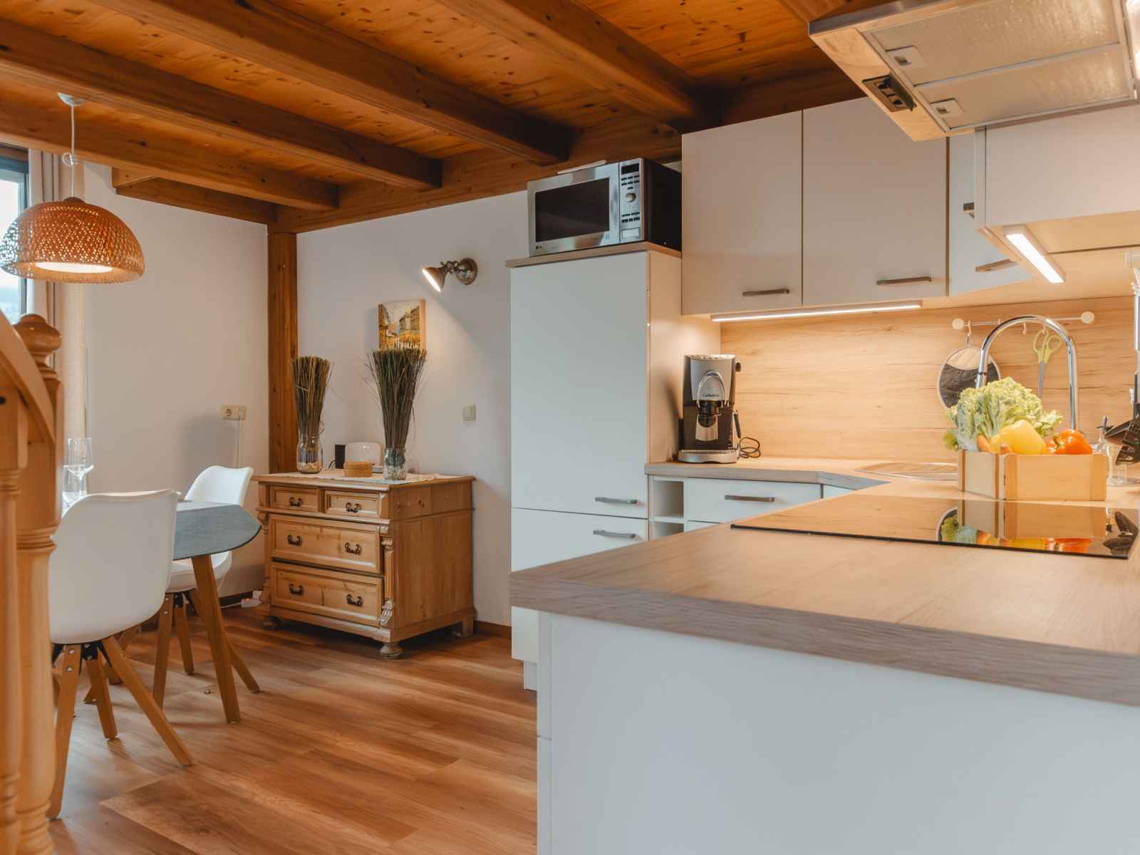 Cuisine ouverte (four, lave-vaisselle, 4 plaques vitrocéramiques, grille-pain, bouilloire électrique, micro-ondes, cafetière électrique). Douche, WC séparé. Sol en bois. Balcon 10 m2. Mobilier de balcon. Très belle vue panoramique sur les montagnes. A disposition: sèche-cheveux. Internet (Connexion WIFI, gratuit). Place de parking No 7. Veuillez noter: adapté(e) aux familles. Logement non-fumeur. Détecteur de fumée, sans ascenseur. La machine à café électrique est une Cafissimo. Au lieu d'une chambre fermée, des espaces de couchage sont situés dans une zone ouverte (galerie, alcôve...). 50402-000674-2020
