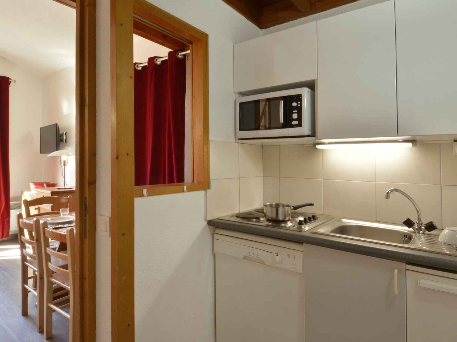 cuisine : ouverte sur le séjour avec 4 plaques électrique, un micro ondes mixte et un lave-vaisselle