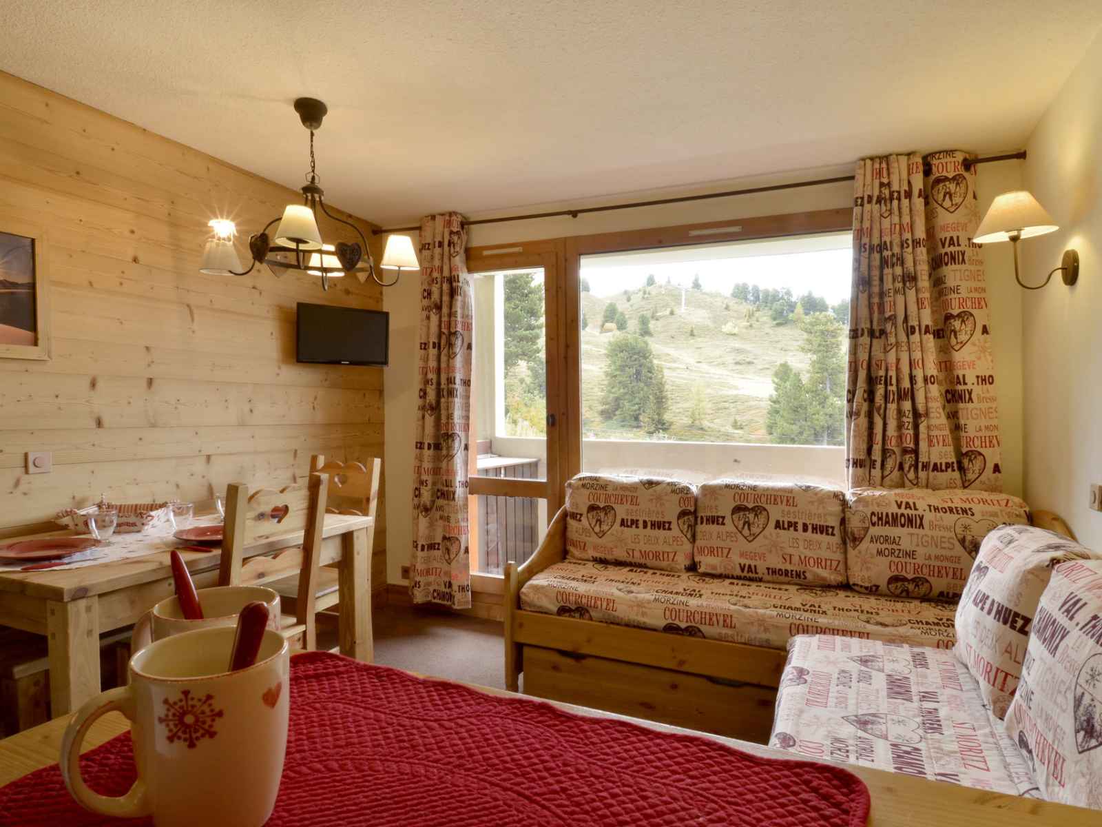 il est situé au sud ouest et au 1er étage avec un balcon et vue sur les pistes.