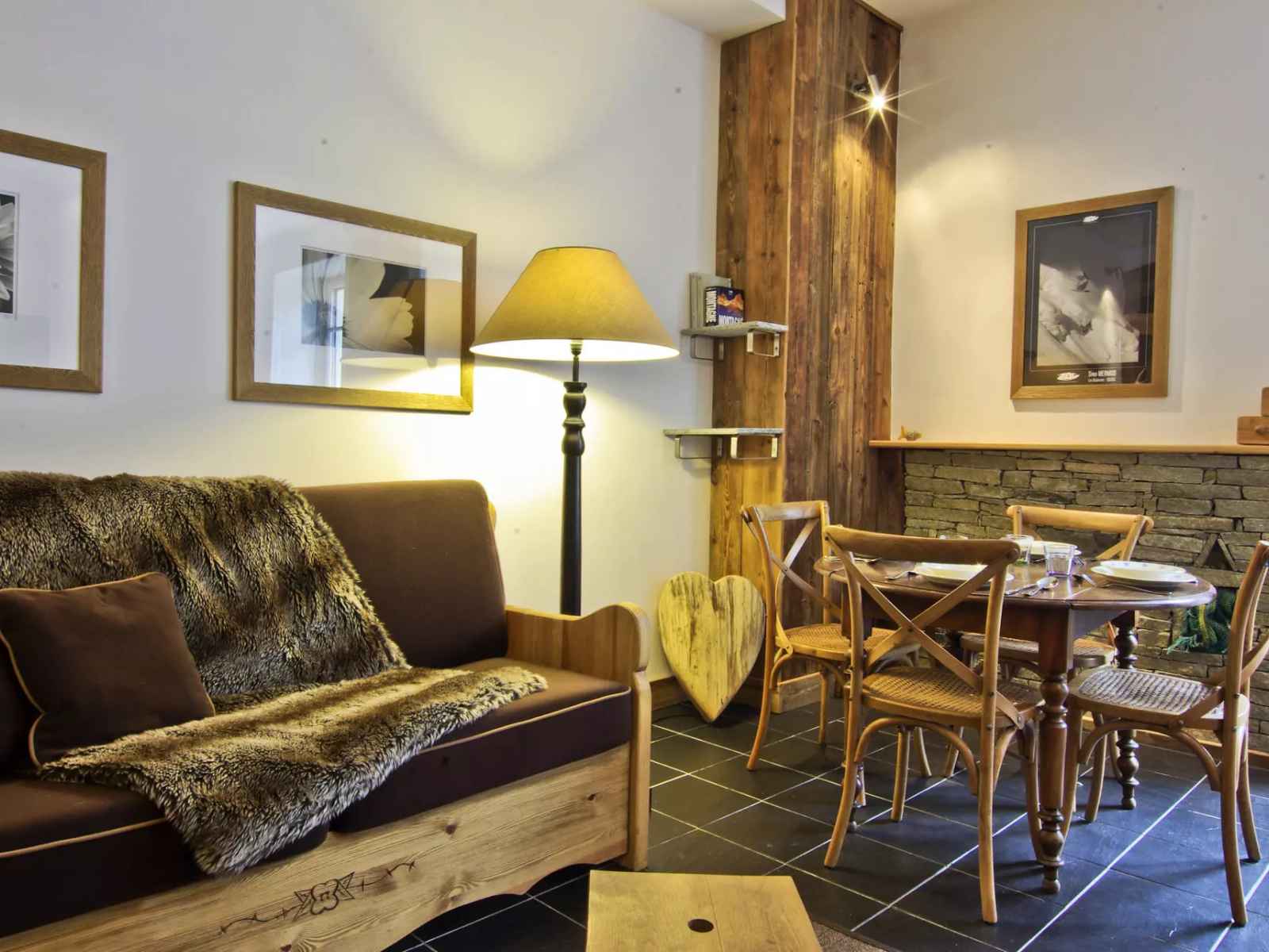 - Coin repas, coin salon avec un canapé lit double (140x190), TV