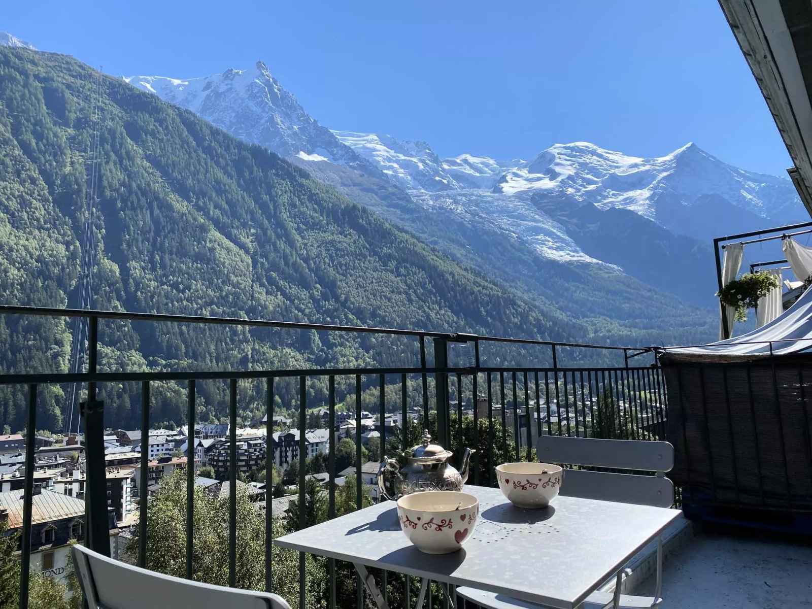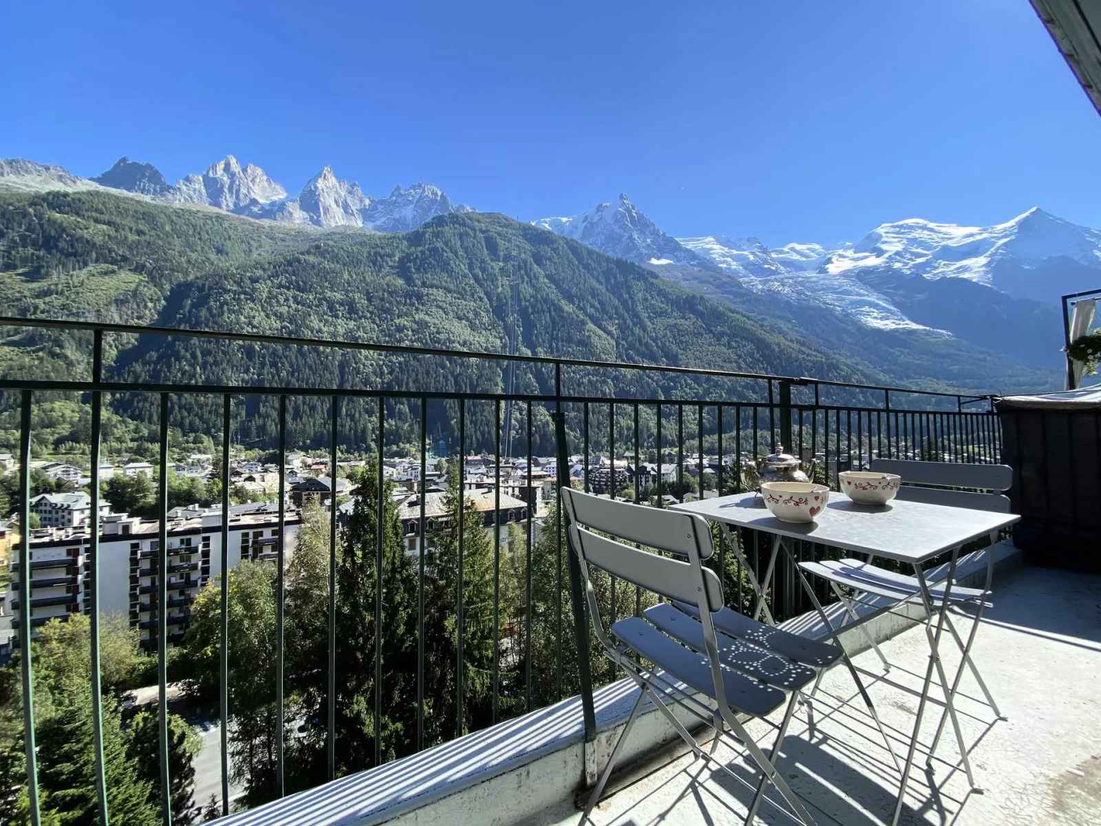 - Balcon avec une vue superbe sur la chaine du Mont Blanc et sur Chamonix.