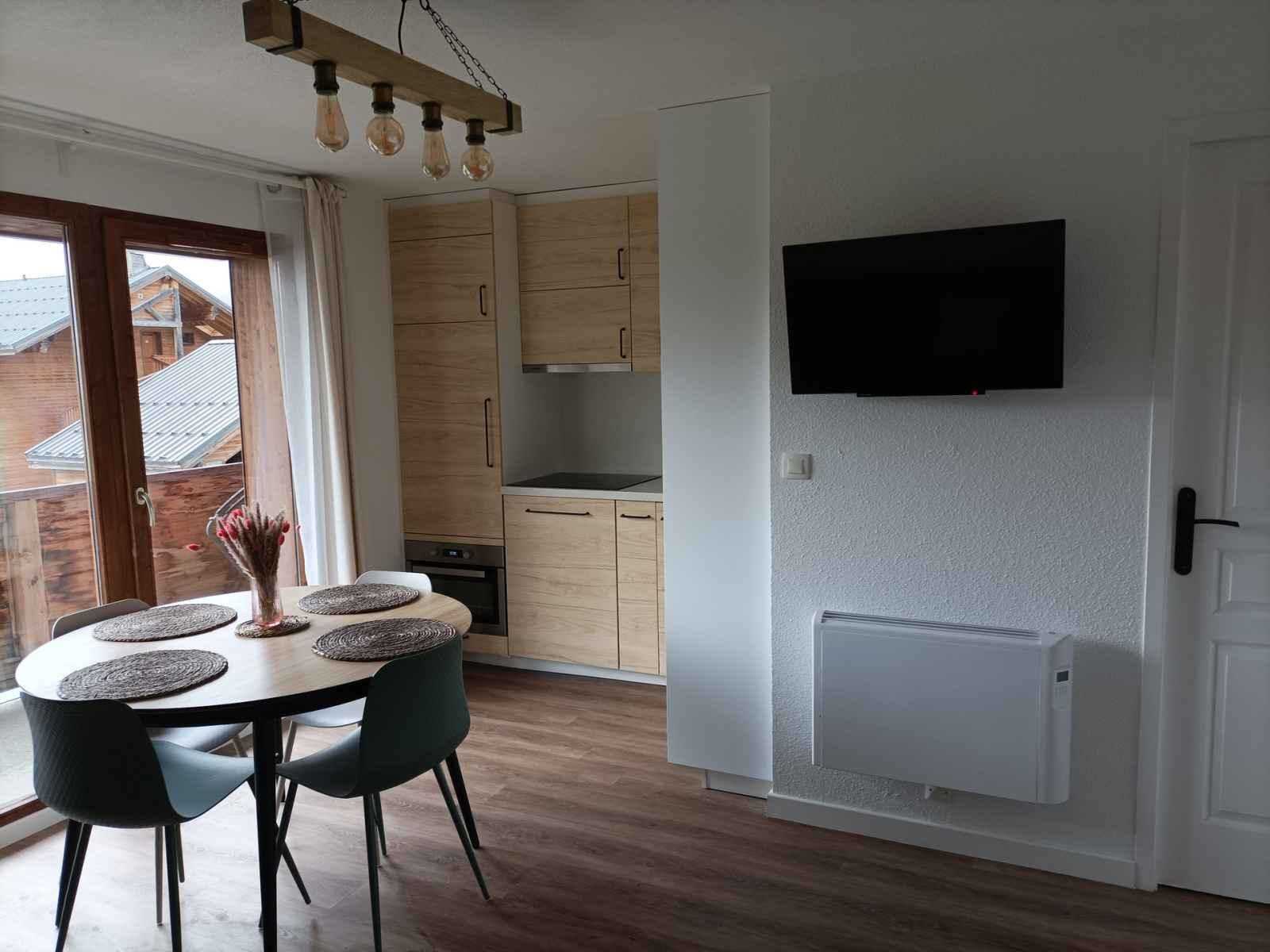 d'eau. Balcon exposé sud-ouest. Local à skis. Parking gratuit. COUCHAGES : - Séjour : canapé convertible 160cm. - Chambre 1: 1 lit double. - Coin montagne: 1 lit superposé (2 lits simples) SANITAIRES : - Salle de bains et WC séparés. Suppléments optionnels : Ménage fin de séjour : 69€ Supplément animal : 9€ / jour ou 45€ / semaine par animal Linge de lit + linge de toilette : 12 € / personne Kit bébé (lit parapluie + chaise haute) selon disponibilité : 15€ / semaine Supléments obligatoires : Taxe de séjour non incluse, à régler sur place Caution (non encaissée, restituée au départ si aucune dégradation n'est constatée)