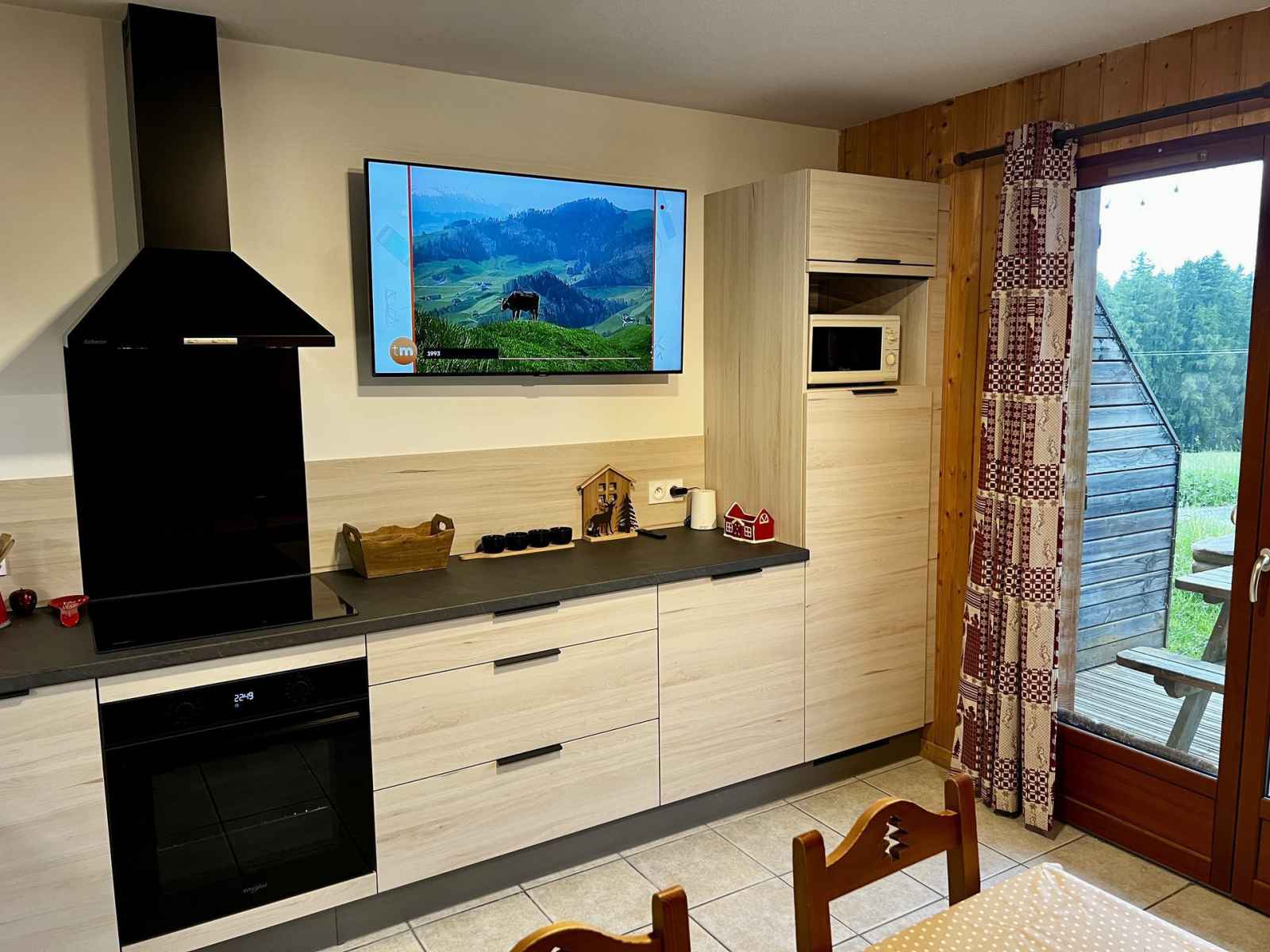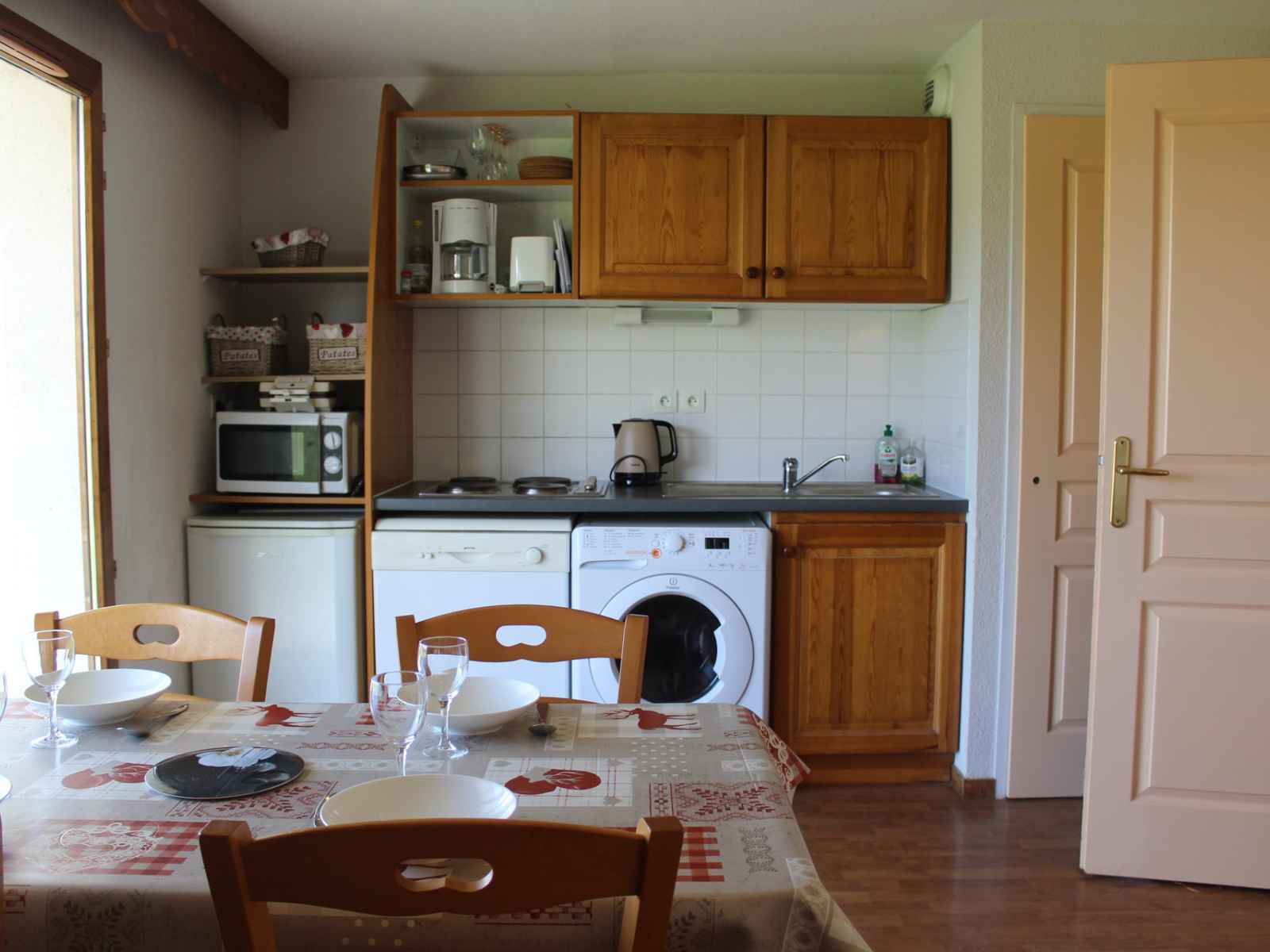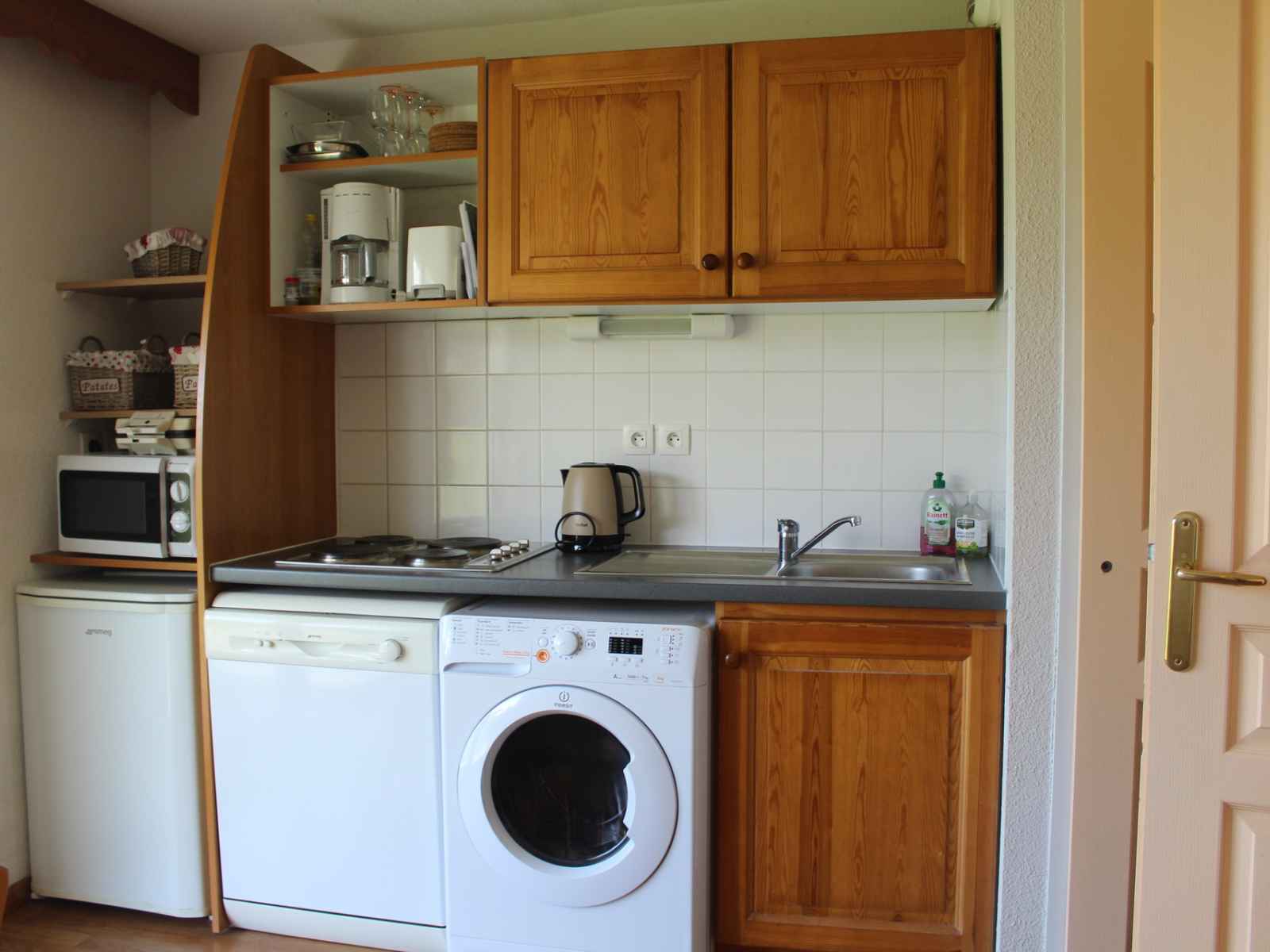 kitchenette entièrement équipée. lave vaisselle, micro-ondes, cafetière électrique.