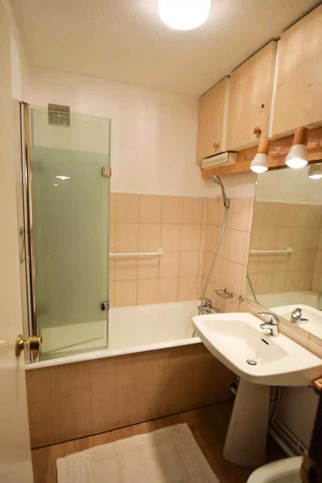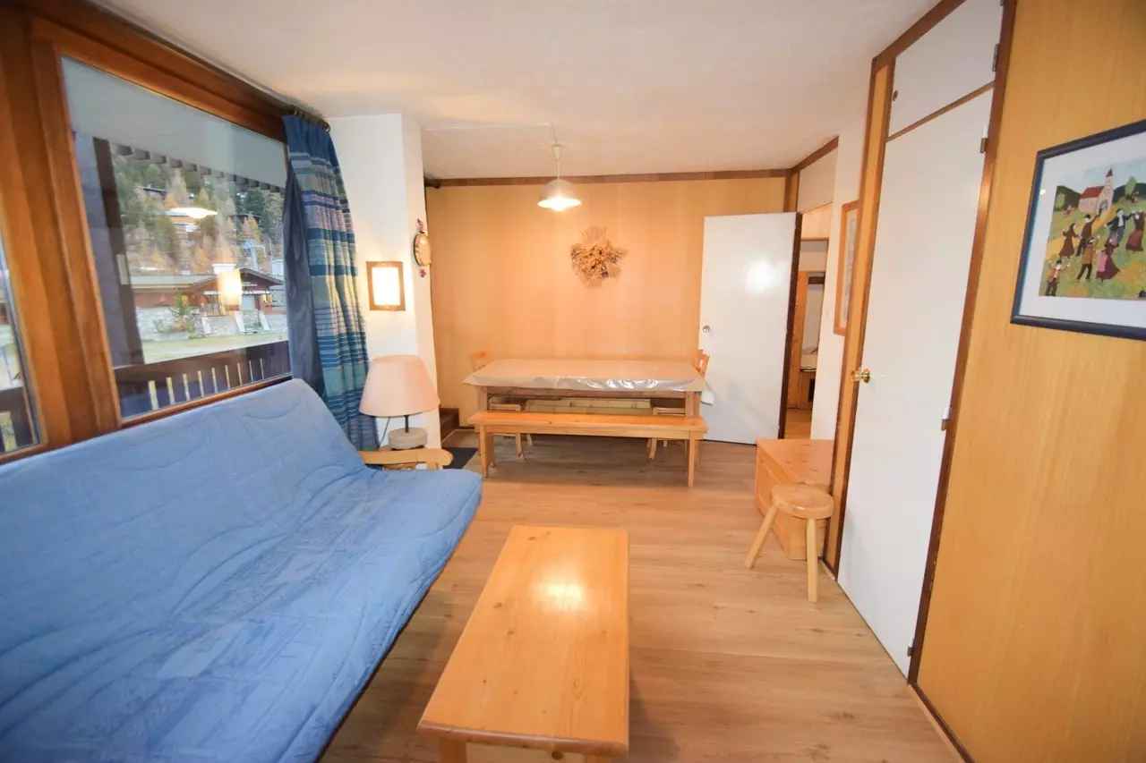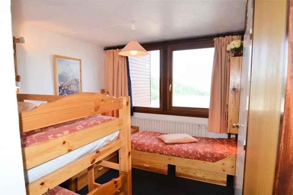 2 pers (le sommier à lattes 140cm se dédouble pour former un lit 2 pers + le matelas se déplie), télévision Chambre 1 : 2 lits 1 pers et 2 lits superposés (exposition Nord), SDB : baignoire, WC séparés - Literie : Couettes - Sol : plastique - Appartement non fumeur. En option et en supplément : Ménage de fin de séjour, draps, serviettes, forfaits ski.