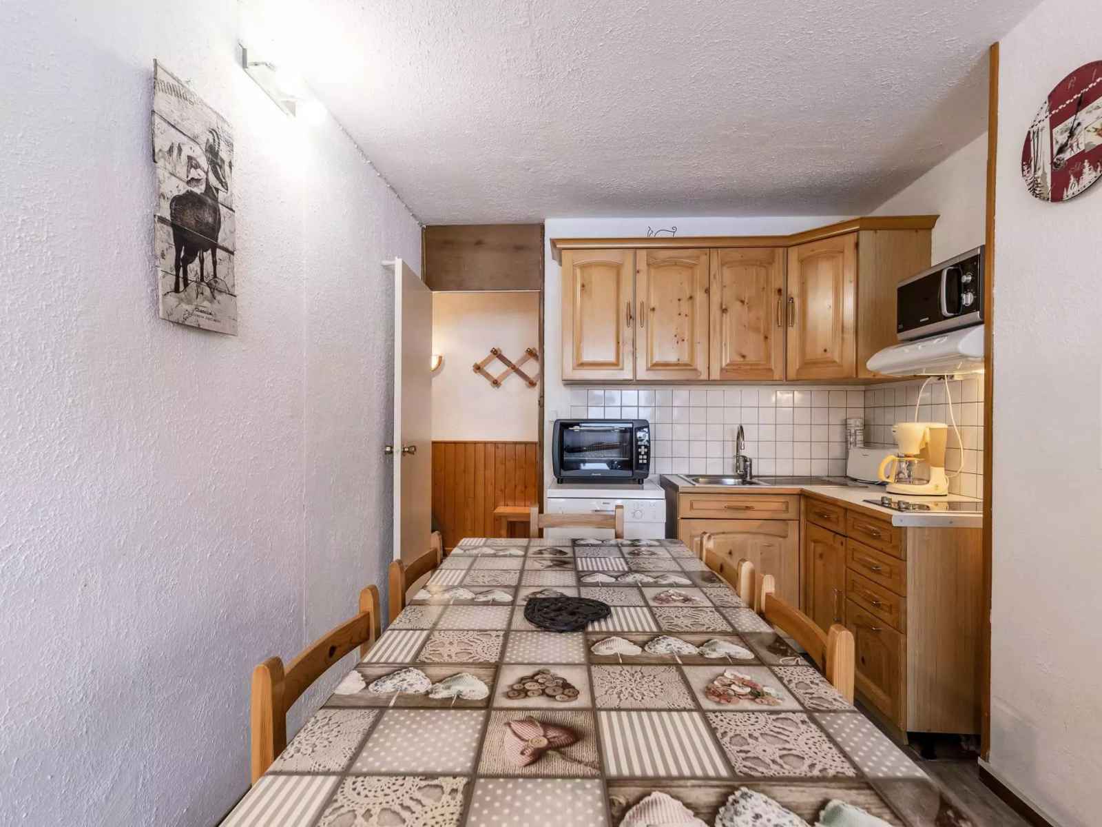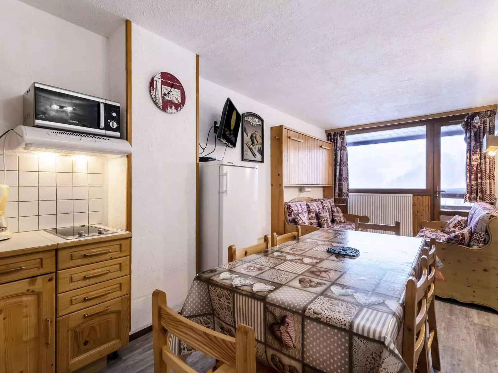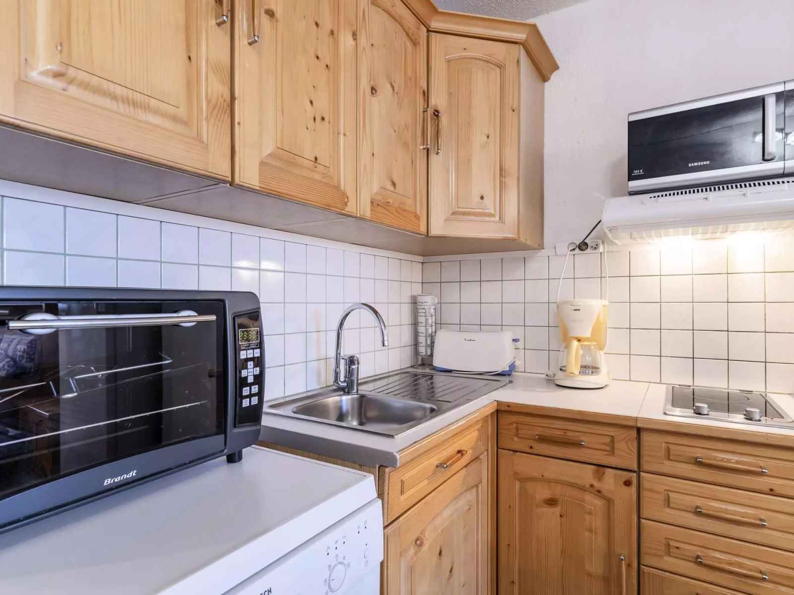 appartement 2 pièces 5 pers, 36m², exposé est ,balcon avec vue sur les pistes, la montagne et la station - 2ème étage avec ascenseur. cuisine dans séjour : 2 plaques élect, réfrigérateur, lave-vaisselle, four et micro-ondes - séjour : coin repas, télévision 2 lits gigognes - chambre/cabine