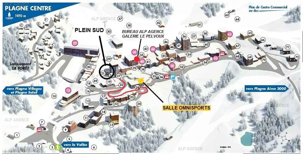 Le plein sud : petite résidence située au cœur de la station, au pied des pistes et à côté des commerces . accès direct à la galerie commerciale. accès pistes dans la galerie : 1 étage par escaliers.