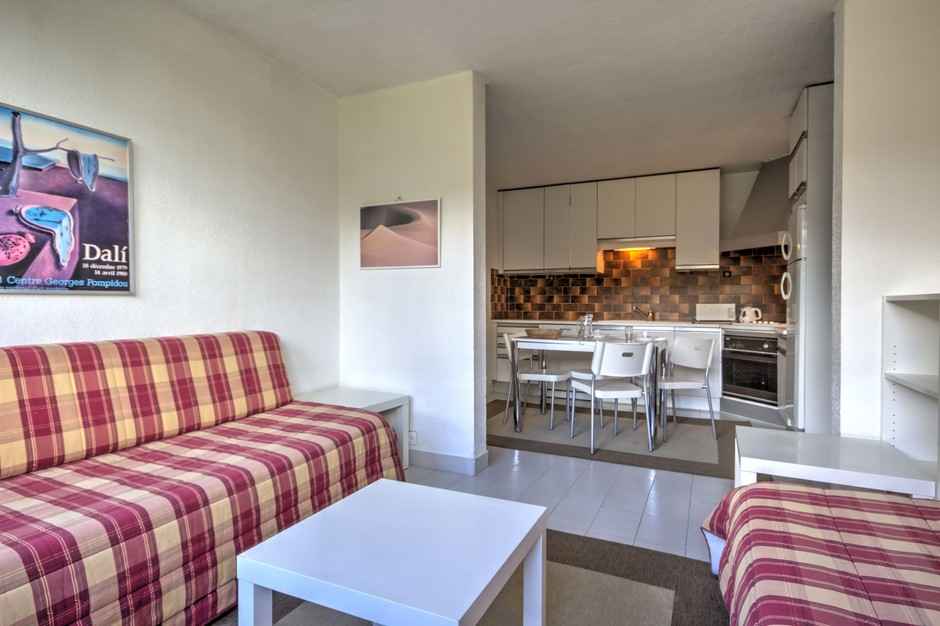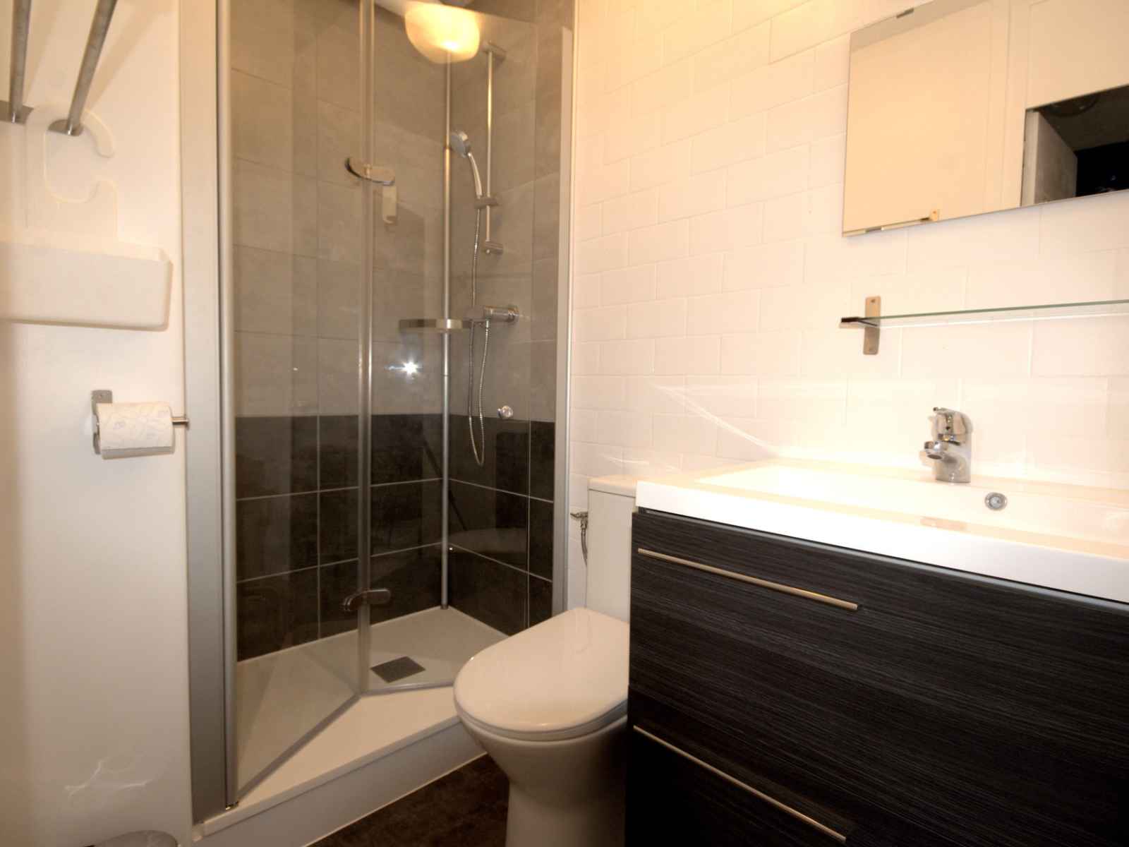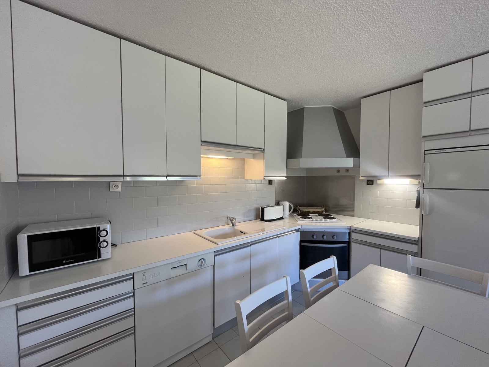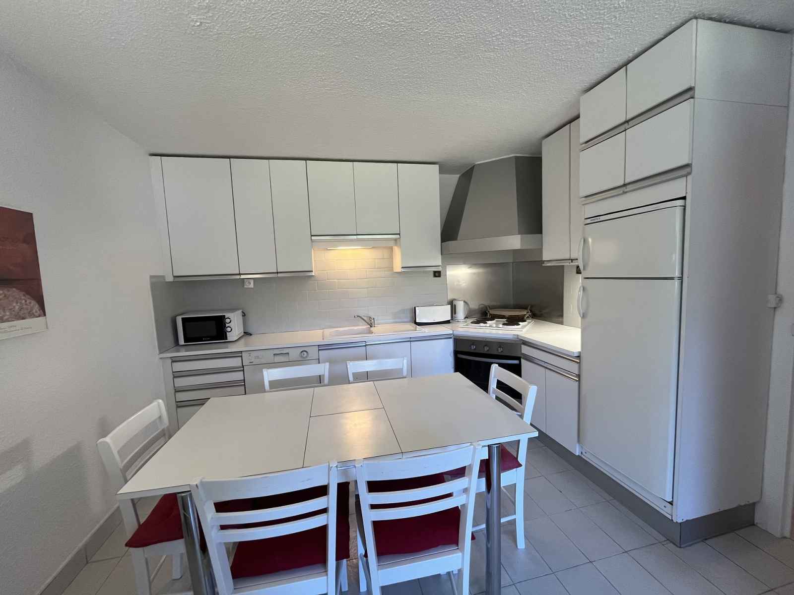 plat. La chambre est composée 2 lits simples. Equipé de couettes La cuisine ouverte sur le séjour est équipée de plaques électriques, d'un réfrigirateur/congélateur, d'un four et d'un lave-vaisselle. La salle d'eau se compose d'une cabine de douche et WC. Pour votre confort un casier à skis est à disposition et la résidence équipée d'ascenseurs. Pour votre information le linge de lit et le ménage de fin de séjour ne sont pas compris. Les animaux ne sont pas admis.