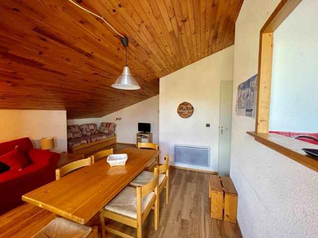 d'une salle de douche et WC séparé. Le coin nuit dans le salon dispose d'un canapé lit gigogne. Dans la grande chambre vous avez deux canapés lits gigogne Pour votre confort vous disposez d'une télévision écran plat. Casier à skis à votre disposition. Ses atouts: - Bel emplacement au calme avec une vue dégagée - Proche du télécabine - couettes Linge et ménage de fin de séjour en suppléments. Animaux refusés. Appartement non fumeur.