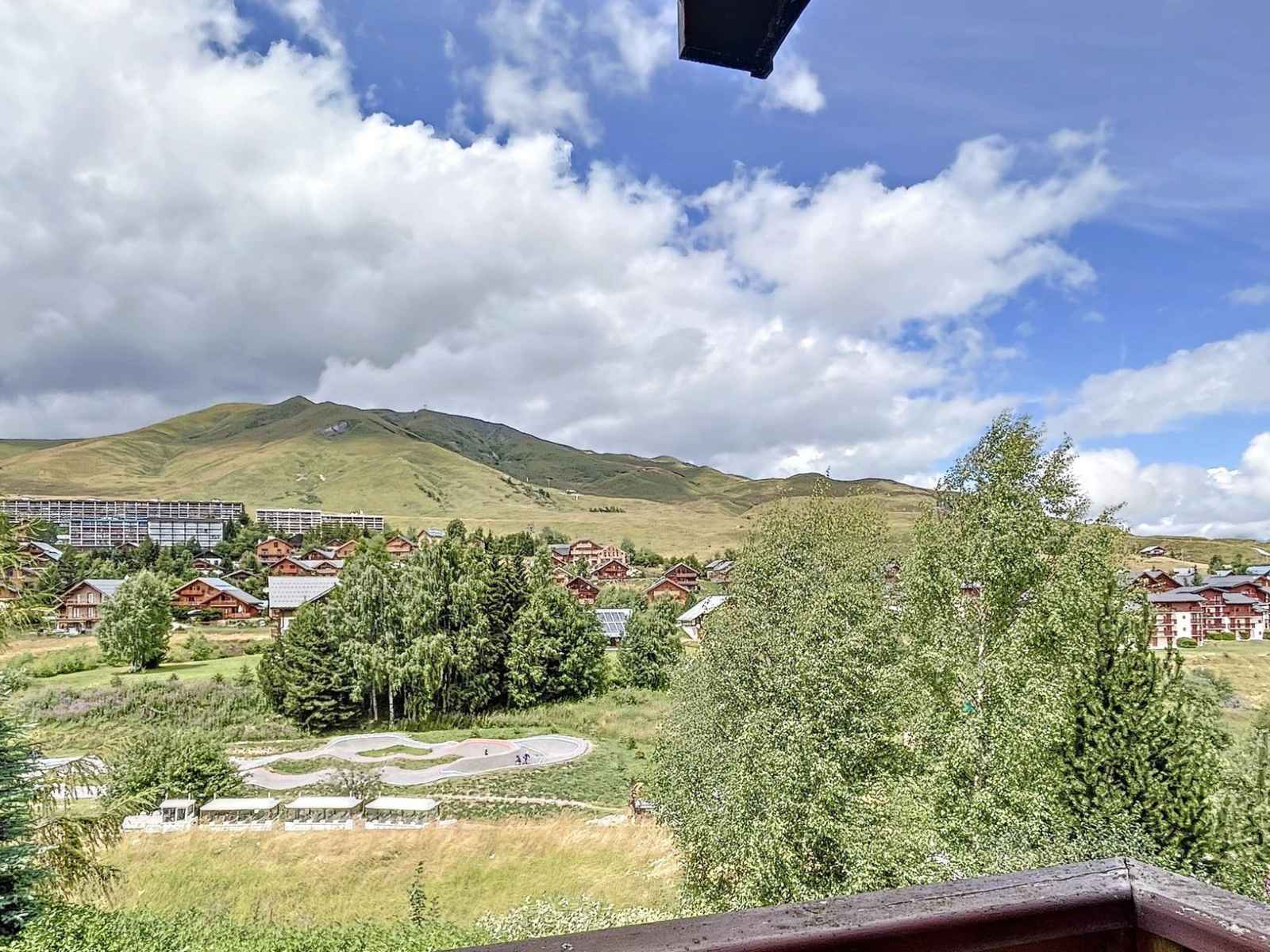 appartement cosy, avec balcon, vue sur les pistes et la station ainsi qu'un parking couvert privé, à 150m du centre de la station et à 500m des