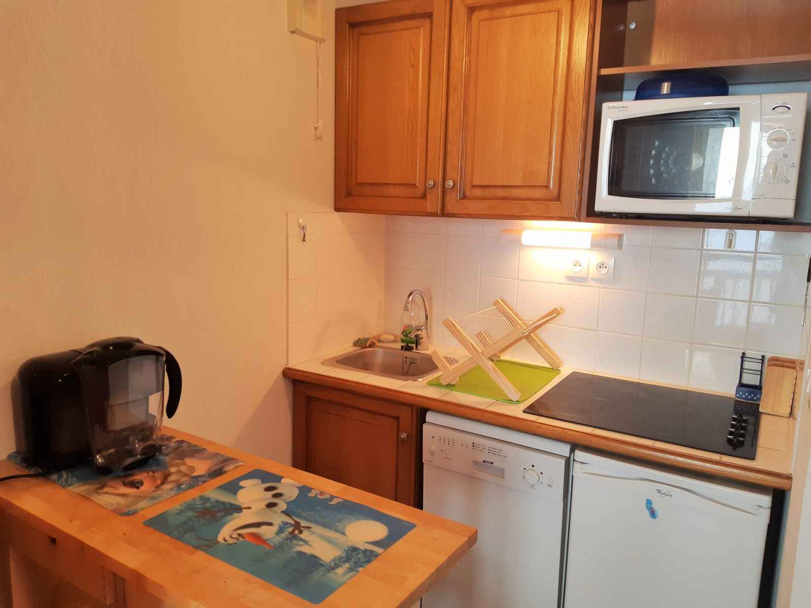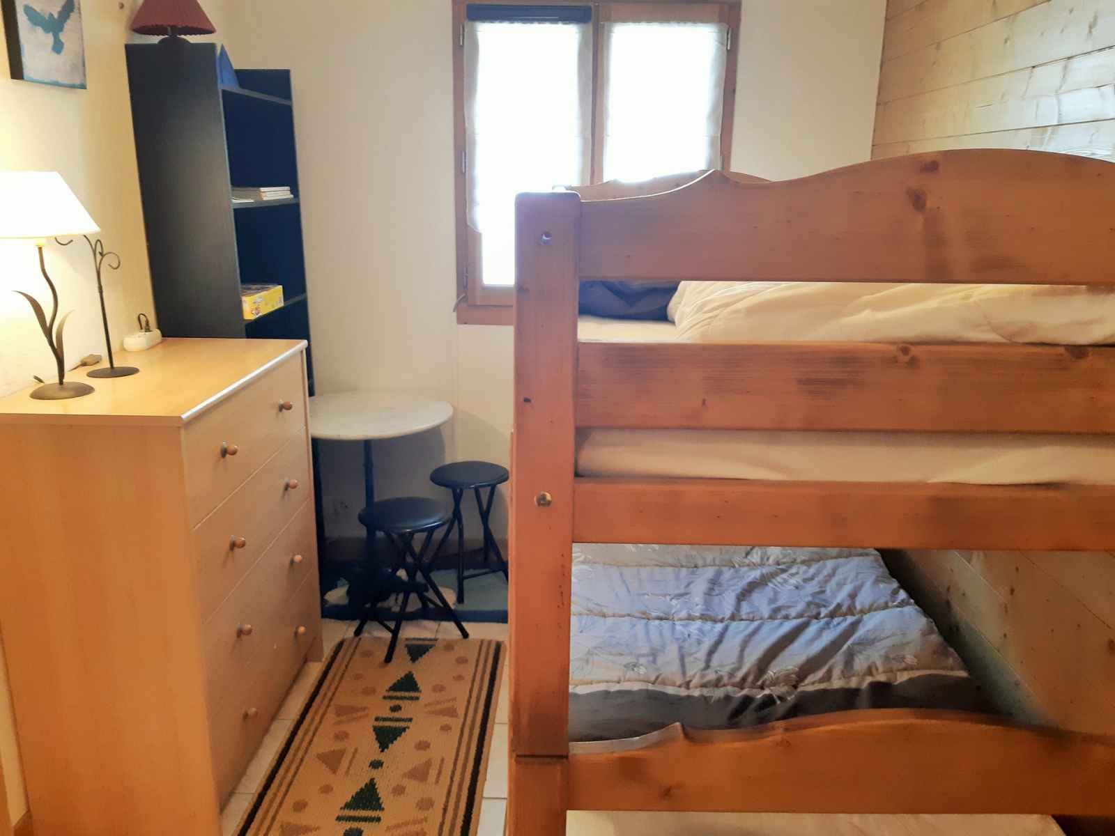 lave-vaisselle, cafetière à filtre et à capsule, grille-pain, appareil à raclette. Couchages : - Chambre : 2 lits simples superposés Couchage supérieur déconseillé aux – de 6 ans - Séjour : 1 canapé clic-clac Sanitaires : Salle d'eau avec douche et WC Divers : Casier à ski Animaux interdits Le linge de lit, le linge de maison, les serviettes ainsi que le ménage de fin de séjour ne sont pas inclus (à réserver au plus tard le jour de votre arrivée et sous réserve de disponibilité).
